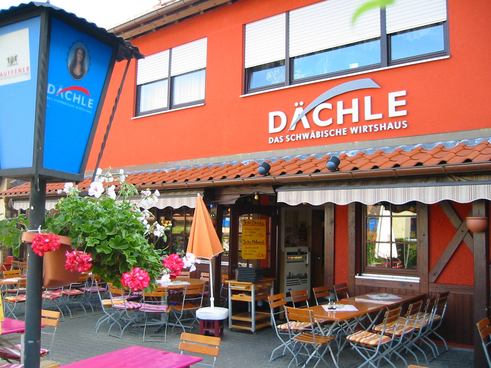 gezapften Bier oder einem Viertele Lauffener Wein ist das Wirtshaus Treffpunkt für jung und alt. Kulinarisch bietet das Dächle eine große Auswahl an schwäbischen Leckereien