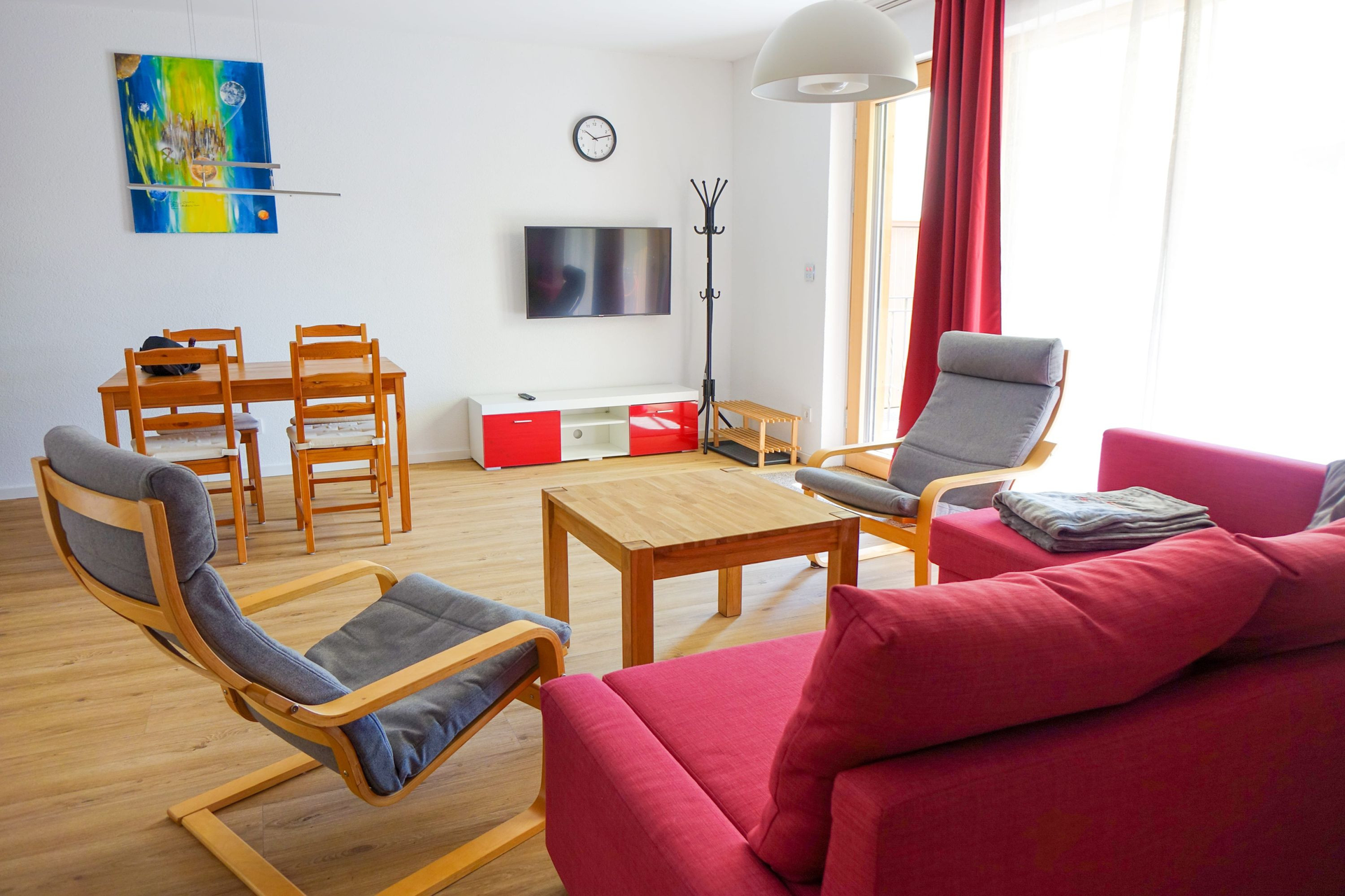 Die Nichtraucherwohnung ist mit einer modernen Haussteuerung ausgestattet. In allen Schlaf- und Wohnräumen gibt es Smart-TVs und jedes Zimmer verfügt über eine Fußbodenheizung. Im Außenbereich gibt es eine kleine Sitzgelegenheit mit Gartenfläche und Grillmöglichkeit sowie einem Spielhäuschen und Sandkasten für die kleinen Gäste.