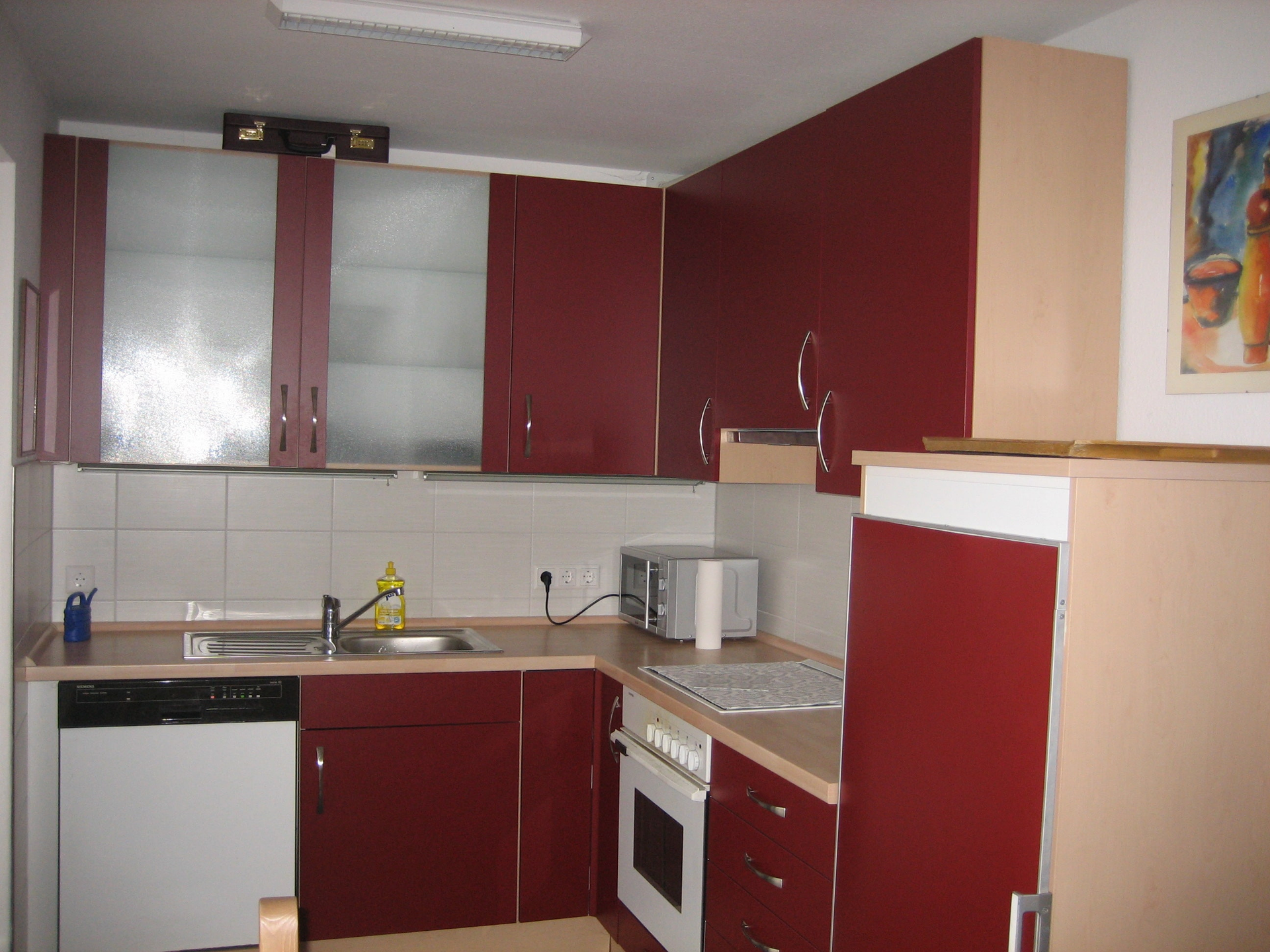 - Küche mit Herd, Mikrowelle, Spülmaschine, Toaster