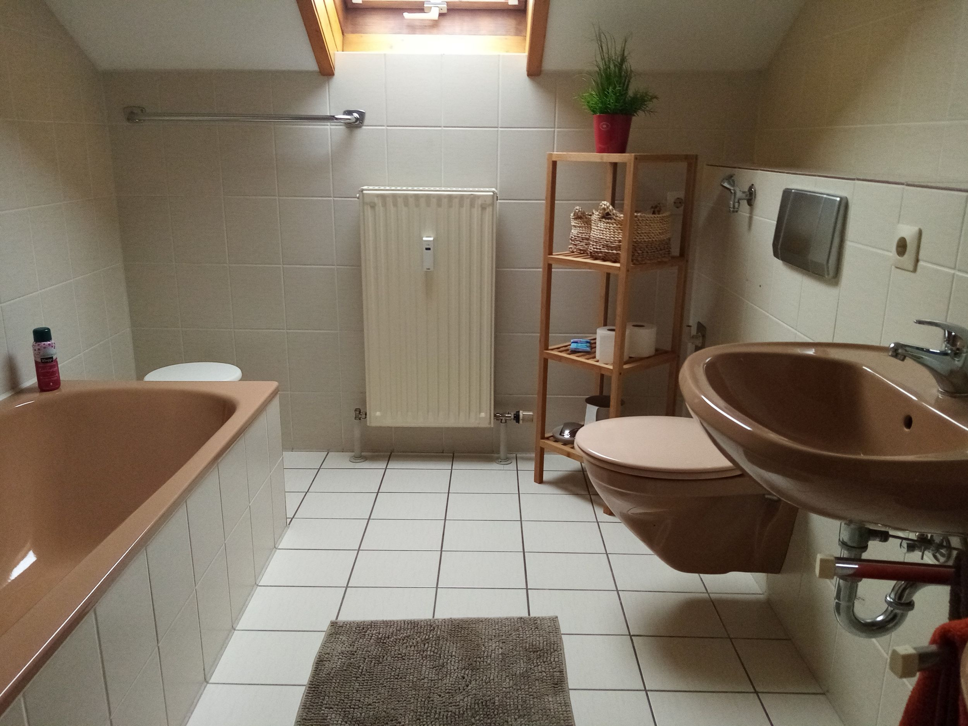 Badezimmer mit Badewanne, Toilette und Waschbecken