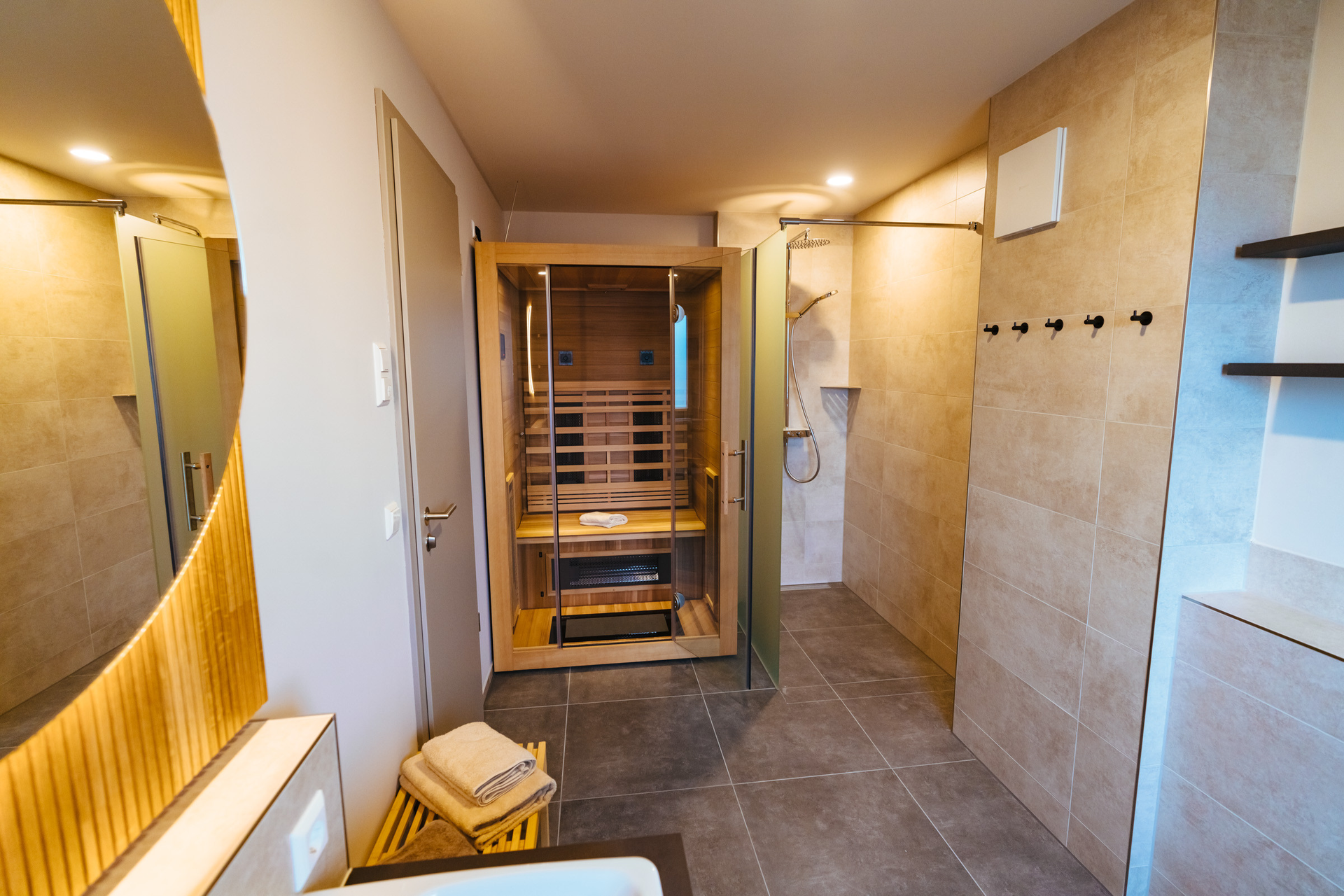 Darüber hinaus haben Sie die Möglichkeit, in kürzester Zeit in die Natur und den Weinbergen zu gelangen und zu Fuß oder mit dem Fahrrad bei entschleunigenden Wanderungen und Bike-Touren die Landschaft zu genießen. In ausgewählten Ferienwohnungen bieten wir Ihnen einen eigenen Wellnessbereich mit einer Infrarot-Wärmekabine im Bad.