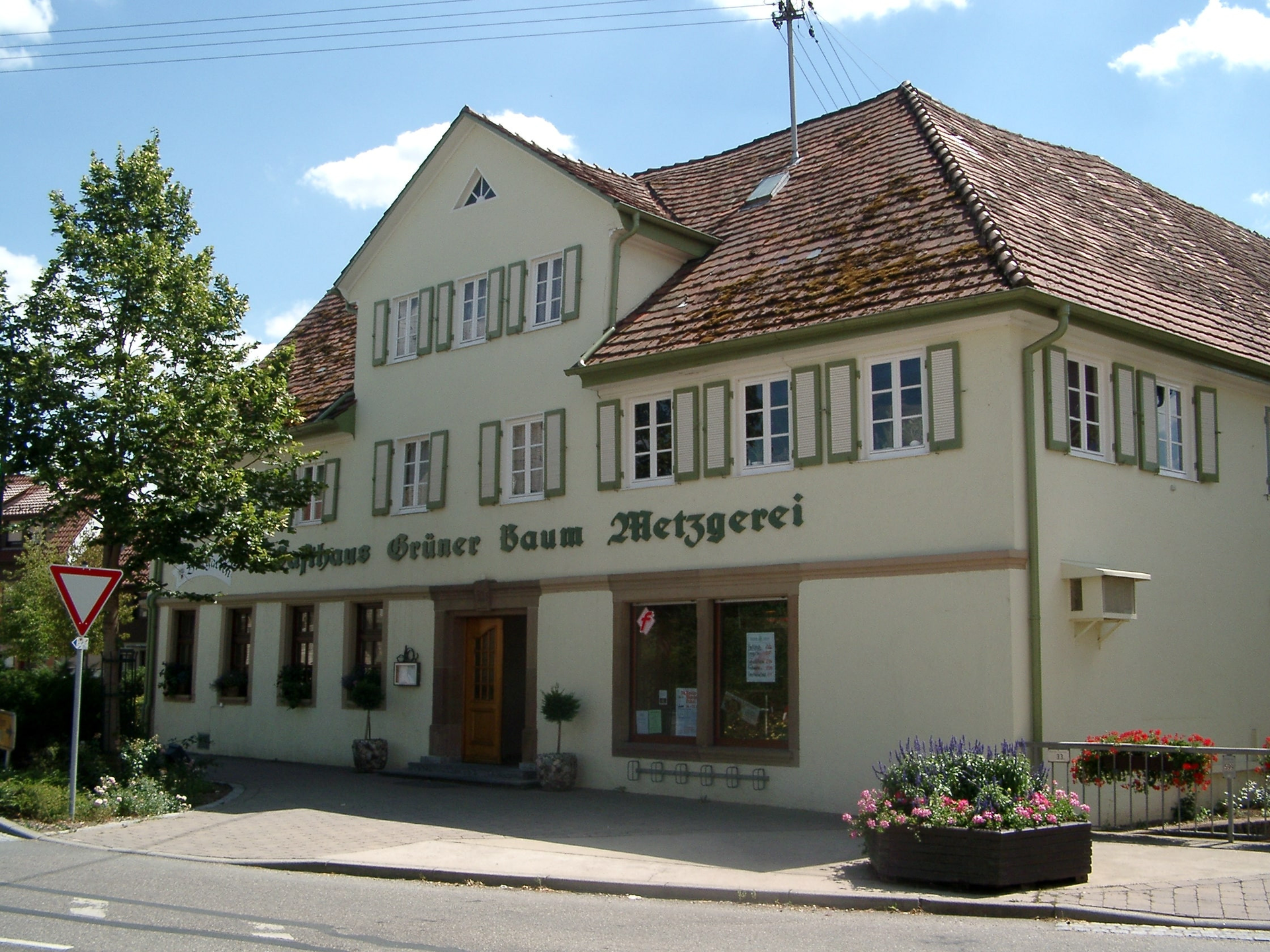 Seit 1823 befindet sich das Gasthaus Grüner Baum mit Biergarten und hauseigener Metzgerei im Familienbesitz der Familie Müller.