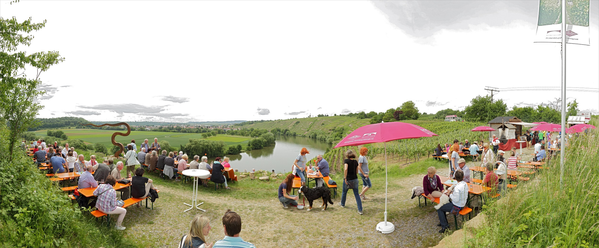 Hoch über dem Neckar, eingebettet zwischen Obstplantagen und Weinreben, erwartet dich der Weinausschank an der WeinTerrasse Kirchheim – ein Ort zum Durchatmen und Genießen.