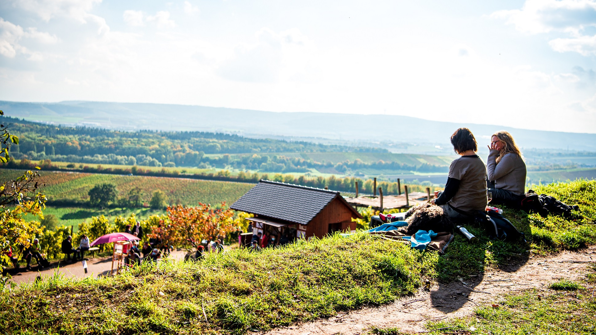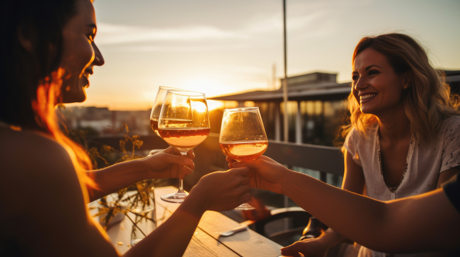 Abendstimmung im Sonnenuntergang am Weinausschank. Eine Gruppe Frauen, die mit Weingläsern anstoßen. | © Neckar-Zaber-Tourismus e.V.