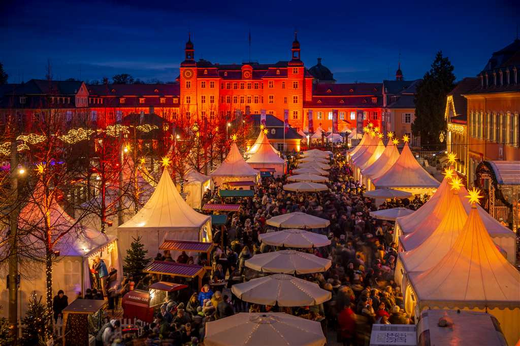Gleich gegenüber, auf dem weitläufigen Schlossplatz, wartet ein abwechslungsreiches kulinarisches Angebot auf hungrige Besucher. Von der Wildbratwurst bis zu veganen Spezialitäten, dem obligatorischen Glühwein oder einem alkoholfreien Punsch bleibt fast kein Wunsch unerfüllt.