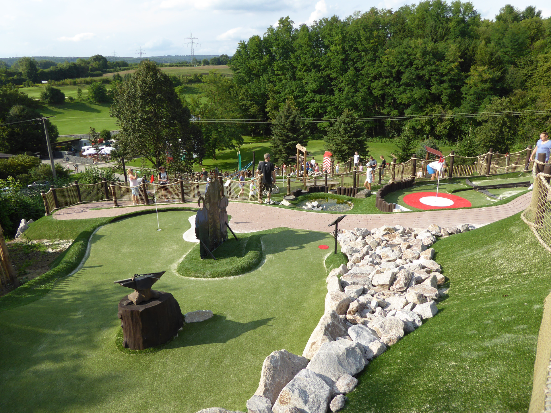 Adventure Golf ist das neue Minigolf! Diese Trendsportart ist jetzt auch in der Rhein-Neckar-Region angekommen. Der Hohenhardter Hof bietet zu der bestehenden Golfanlage nun auch diese Minivariante an. Sie wird mit original Golf-Schlägern und -Bällen auf naturidentischen Kunstrasenbahnen gespielt, die auf 10 bis 20 Metern Länge Hindernisse, wie Schrägen, Hügel, Wasser- und Sandhindernisse, aufweisen. Zusammen mit den fantasievollen, an das Mittelalter angelehnten Features macht die Anlage auch Kindern Lust auf eine sportliche Herausforderung.