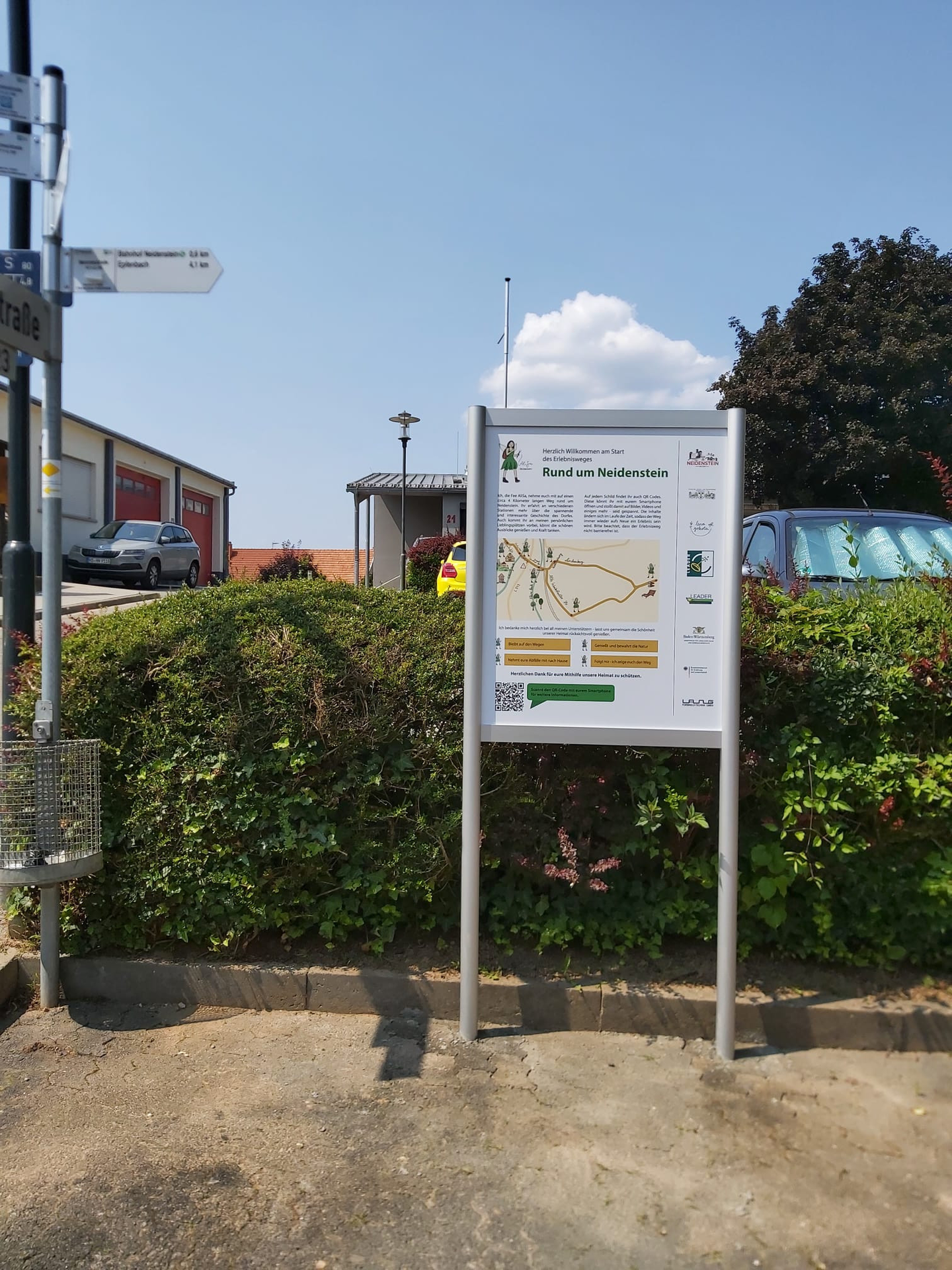 Der Erlebnisweg "Rund um Neidenstein" nimmt Sie mit auf einen circa vier Kilometer langen Rundweg. Sechs unterschiedliche Stationen laden dazu ein mehr über die Geschichte des Dorfes zu erfahren und die Ausblicke bis zum Pfälzer Wald zu genießen. An jeder Station finden Sie einen QR Code, der passende Musikstücke, Texte und Videos erlebbar macht. Der Weg ist nicht durchgehend barrierefrei.