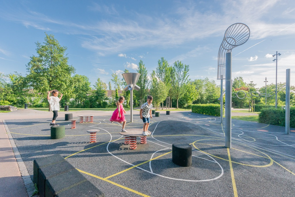 Ein toller Treffpunkt für die Jüngsten (bis ca. 6 Jahre) ist der Kinderspielplatz. Dieser soll spielerisch die Sinneswahrnehmung und die Bewegung fördern. Ein Pavillion, der Wetterschutz bietet, ermöglicht das Spielen auch bei schlechtem Wetter. Zudem sind Sitzgelegenheiten und Sanitäranlagen vorhanden.