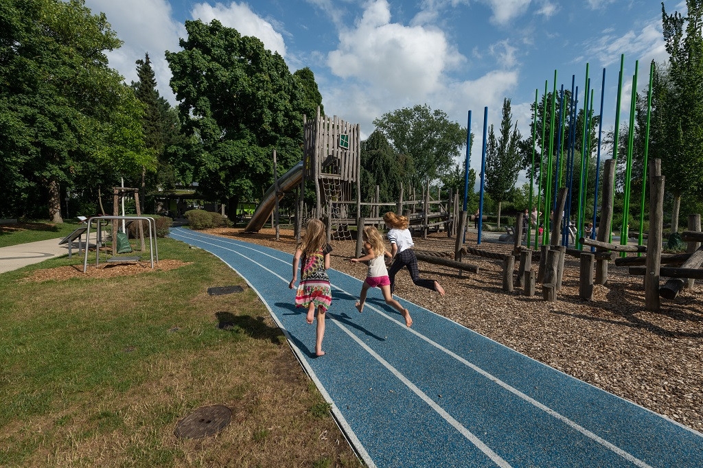 Ein toller Treffpunkt für die Jüngsten (bis ca. 6 Jahre) ist der Kinderspielplatz. Dieser fördert spielerisch die Sinneswahrnehmung und die Bewegung. Ein Pavillon, der Wetterschutz bietet, ermöglicht das Spielen auch bei schlechtem Wetter. Zudem sind Sitzgelegenheiten und behindertengerechte Sanitäranlagen mit Wickelmöglichkeit vorhanden.
