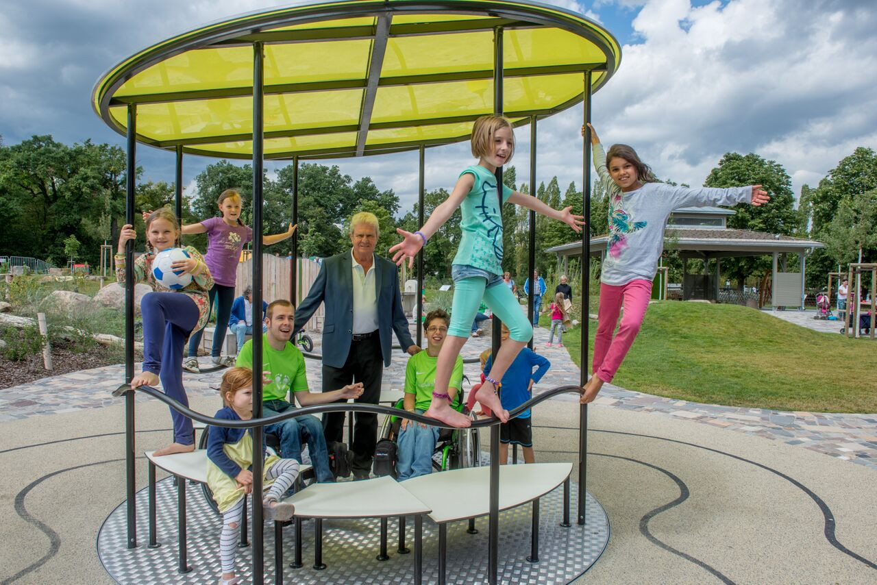 Ein toller Treffpunkt für die Jüngsten (bis ca. 6 Jahre) ist der Kinderspielplatz. Dieser soll spielerisch die Sinneswahrnehmung und die Bewegung fördern. Ein Pavillion, der Wetterschutz bietet, ermöglicht das Spielen auch bei schlechtem Wetter. Zudem sind Sitzgelegenheiten und Sanitäranlagen vorhanden.