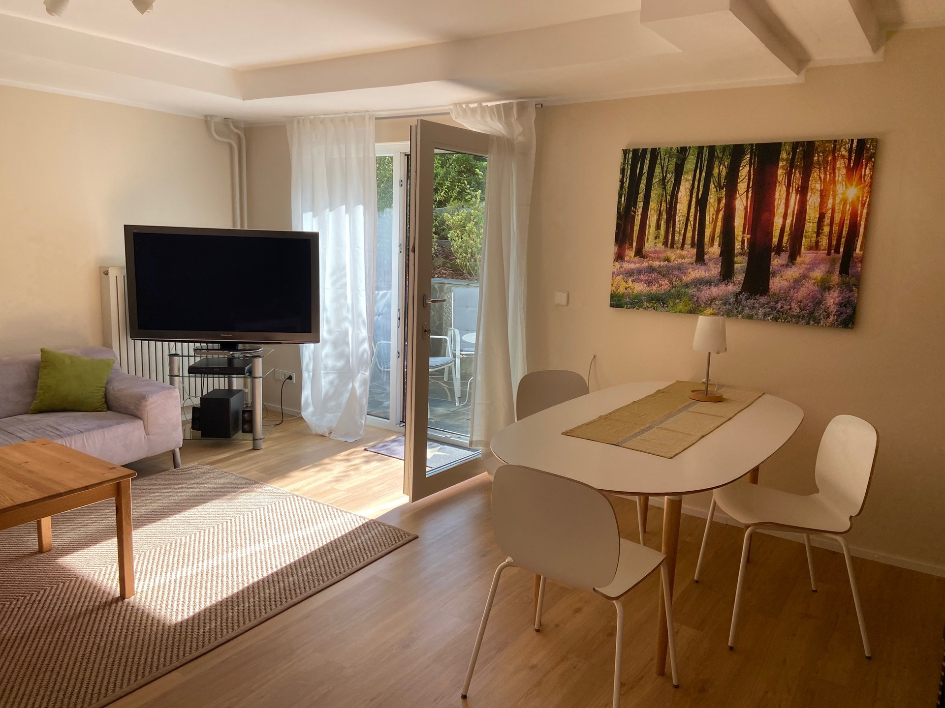 Die Ferienwohnung (60 qm) in ruhiger Ortsrandlage in Sinsheim-Reihen lädt zu einem erholsamen Urlaub zu zweit ein. Die Fewo verfügt über ein modernes Bad mit begehbarer Dusche. Im Wohn/Esszimmerbereich befindet sich ein TV- Flachbildschirm, Eckcouch und ein großer Essplatz. Daneben schließt sich über einen Raumteiler getrennt das Doppelbett an. die Küche mit kleinem Frühstücksplatz ist komplett eingerichtet. Direkt vor der Ferienwohnung befindet sich eine kleine sichtgeschützte möblierte Terrasse.