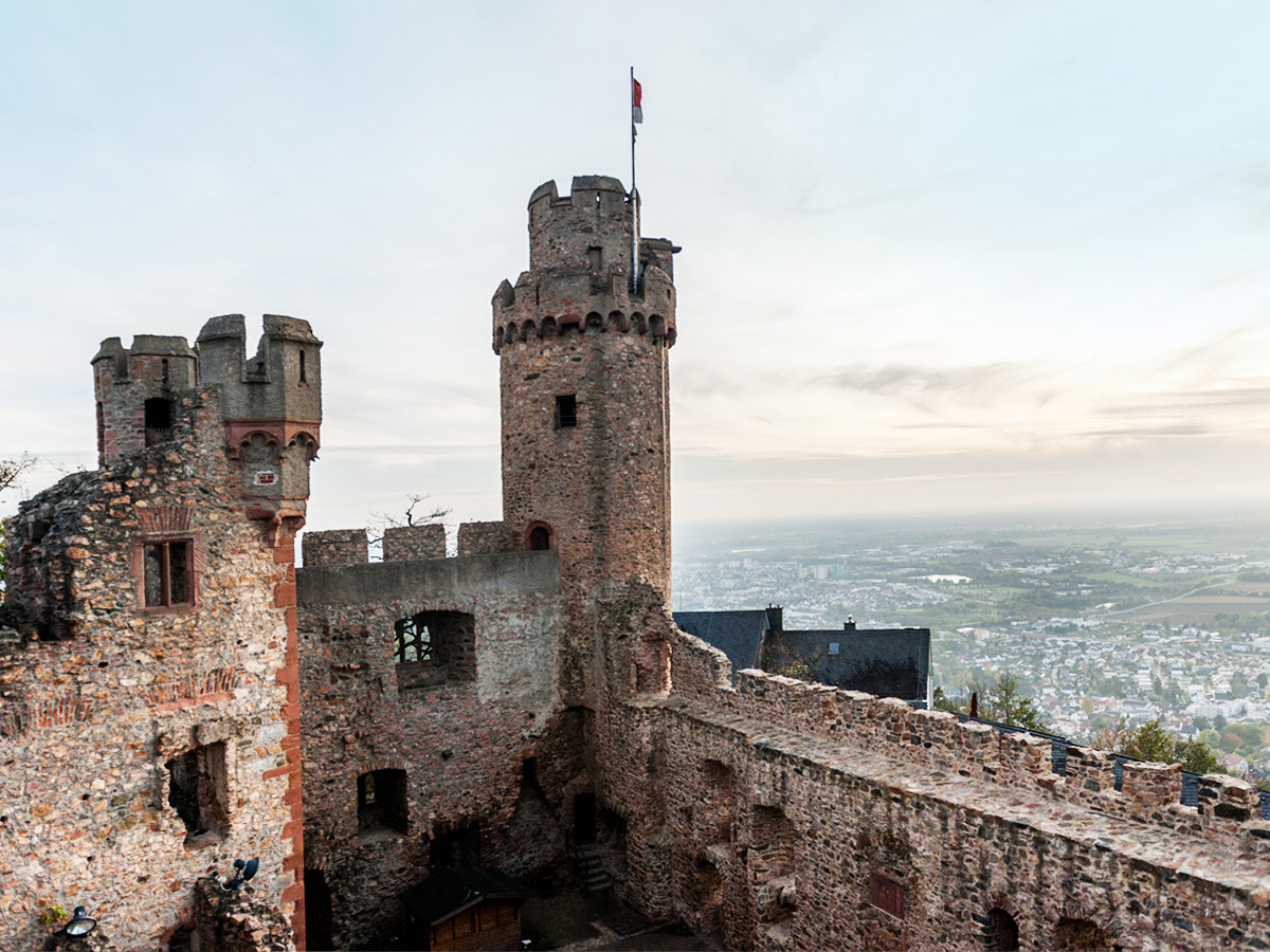 Der Burgensteig Bergstraße hat es in sich: Viele Burgen und Schlösser sowie viele Auf- und Abstiege wollen erobert und erwandert werden. Der sportliche Wanderweg verläuft teils parallel zum Rheingraben entlang der Bergstraße und teils in Seitentälern des Vorderen Odenwaldes. Seit seiner Neukonzeption 2014 ist er regelmäßig vom Deutschen Wanderverband als Qualitätswanderweg zertifiziert worden. Die vom Odenwaldklub (OWK) markierte Route ist rund 120 km lang. Sie verbindet Darmstadt mit Heidelberg und folgt dem Verlauf einer alten Handelsstraße, welche die Römer bauten und „strata montana“ (deutsch: Bergstraße) nannten. Mit der richtigen Wanderausstattung ist der Burgensteig ganzjährig wanderbar. Anfang März bis Ende Oktober sind die beliebtesten Zeiten. Extremsportler haben die Strecke mit ihren 3650 Höhenmetern bereits in gut 22 Stunden am Stück bezwungen, allerdings ohne eine Burg zu besuchen oder gar dort einzukehren.