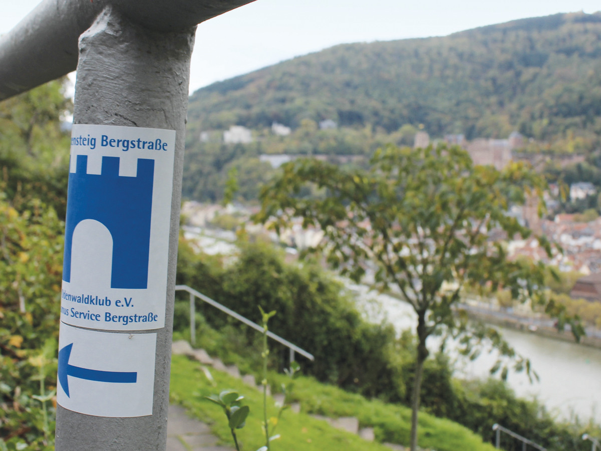 Bergstraße. Auf jeder der nachfolgenden neun Etappenseiten findet man