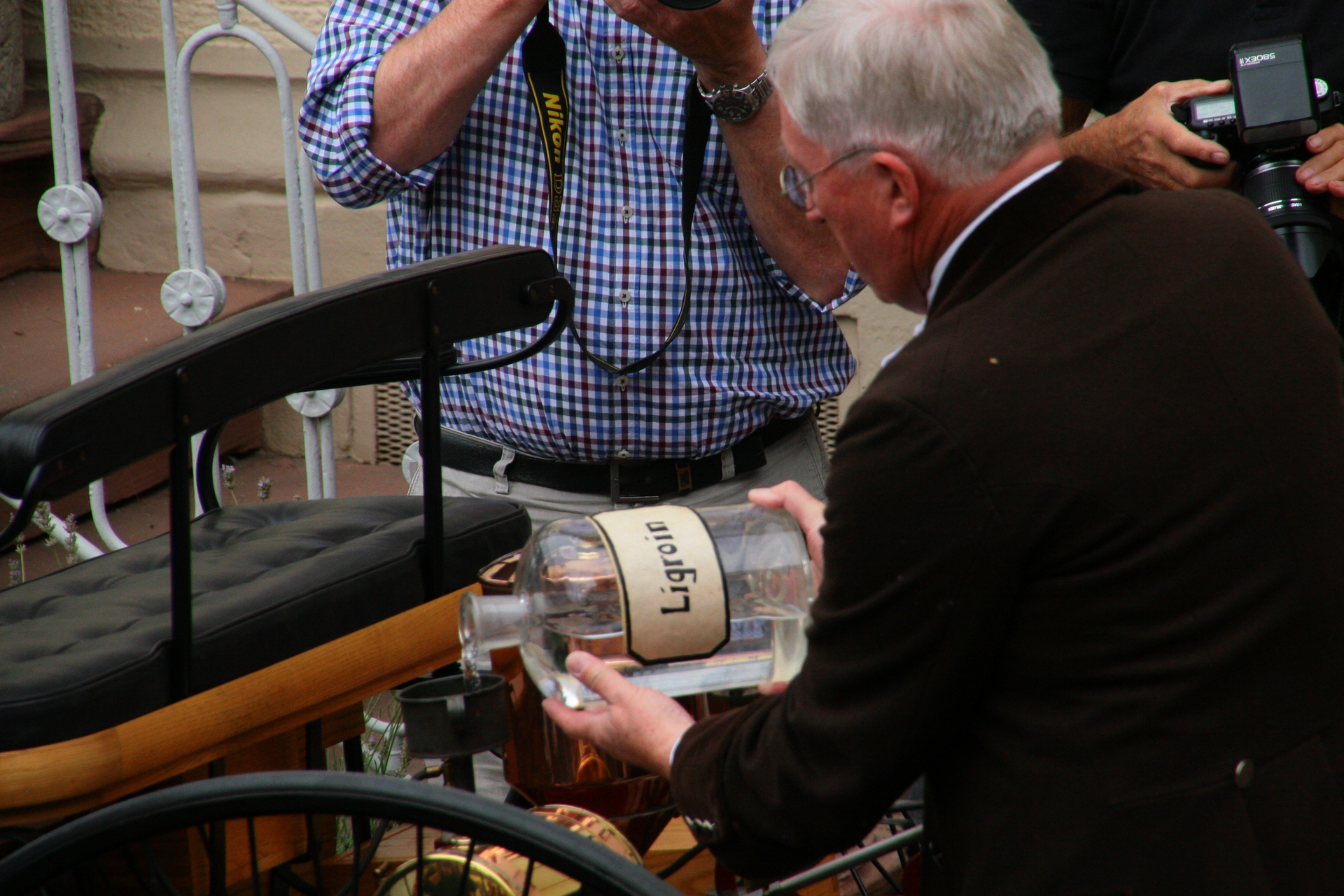 In Wiesloch ging Bertha Benz bei der ersten Überlandfahrt mit dem neu entwickelten Motorwagen ihres Mannes das Benzin aus. Sie wusste sich zu helfen und wendete sich an den Stadtapotheker, der konnte ihr mit ein paar Litern Ligroin, eine Art Waschbenzin, aushelfen. An diesem Platz erinnert eine von Pit Elsasser (Wiesloch) geschaffene Plastik an die damals stürmische und abenteuerliche Fahrt. Noch heute vergeht kaum ein Jahr, an der nicht an dieser historischen Stätte die Oldtimer vergangener Jahrzehnte eine Rast einlegen.