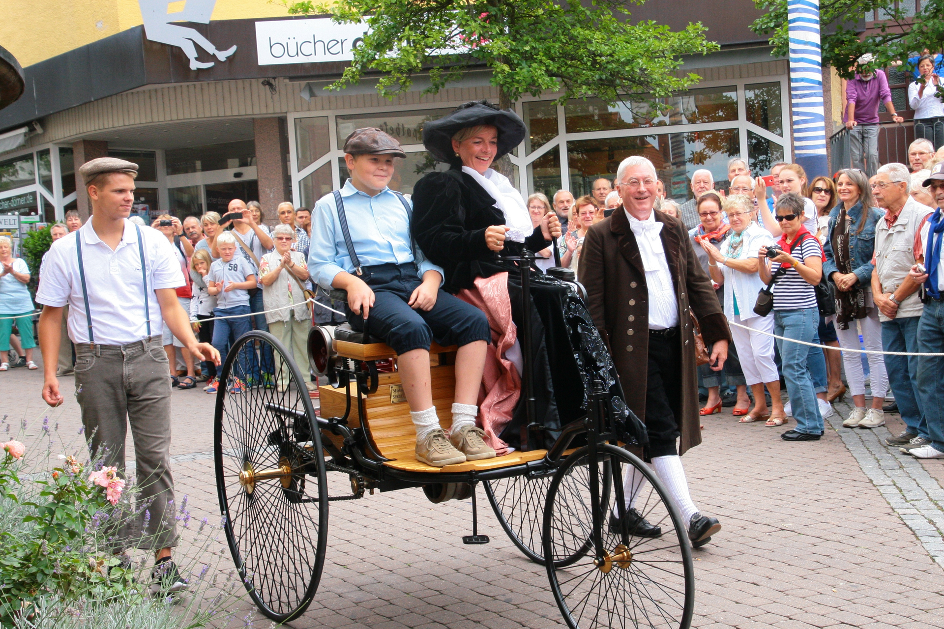 Bertha Benz "entlieh" im August 1888 ohne Wissen ihres Mannes Karls Benz dessen Motorwagen zu einer Überlandfahrt von Mannheim nach Pforzheim, und zwar in Begleitung ihrer beiden Söhne.