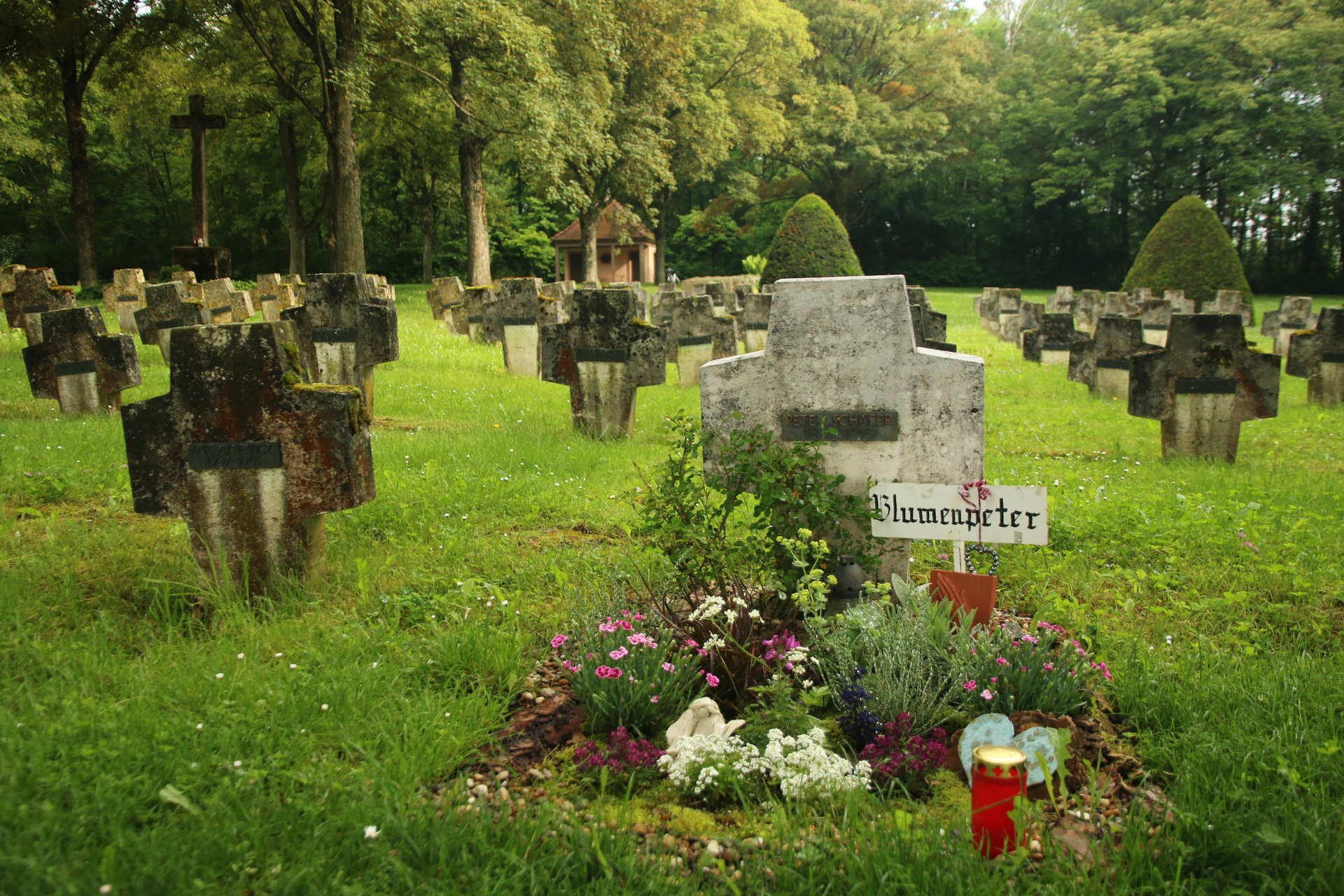 Schlichte Betonkreuze in Reih und Glied, umgeben von viel Grün, erinnern an die Zeiten des staatlich und medizinisch sanktionierten Terror. Ermordete Kinder und verhungerte Patienten sind hier genauso beigesetzt wie gefallene Soldaten oder verschleppte Zwangsarbeiter.