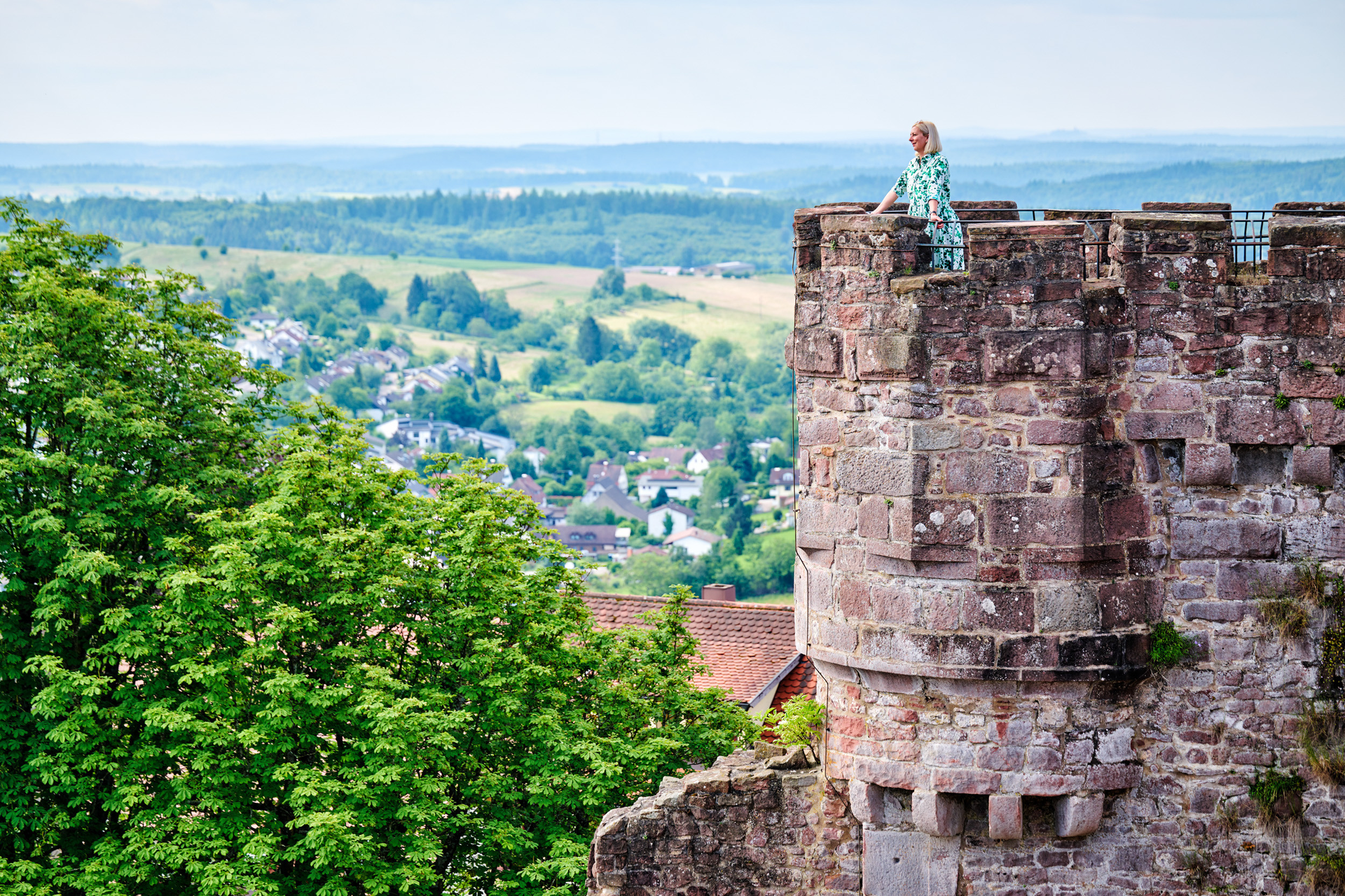 Weithin sichtbar steht die stolze Bergfeste Dilsberg auf dem gleichnamigen Berg im Neckartal. Von den Bergmauern aus bietet sich ein fantastischer Blick über den Neckar und den Odenwald.