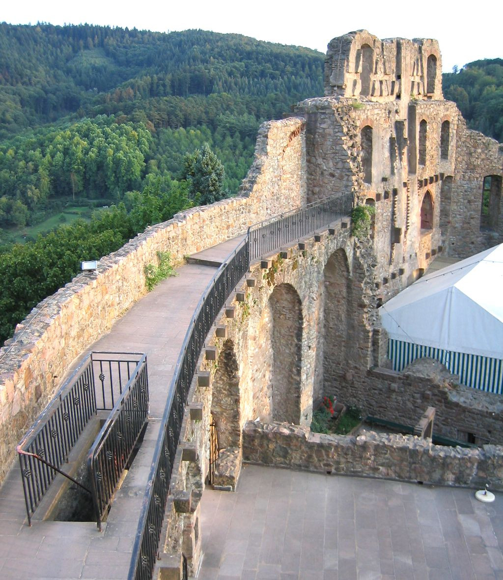 Heute kann man in den Sommermonaten im Biergarten innerhalb der Burg sitzen und einen herrlichen Panoramablick auf die Altstadt Weinheims und in die Pfalz genießen.