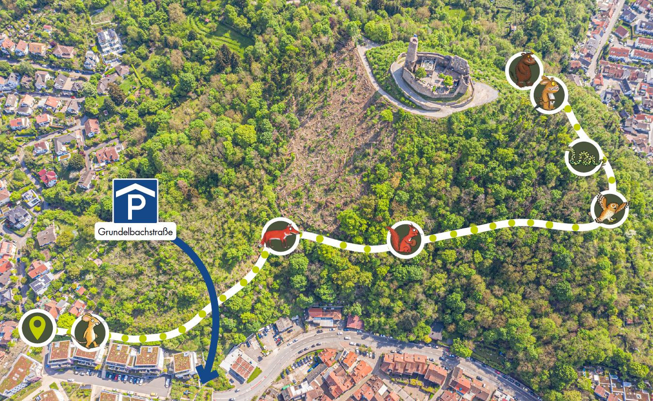 Seit 2022 gibt es den tollen Grüffelo-Pfad in Weinheim. Es ist der erste Pfad seiner Art in Süddeutschland. Auf dem ca. 600 Meter langen Weg zur Burgruine Windeck stehen die Maus, der Fuchs, das Eichhörnchen, die Eule, die Schlange, das Grüffelo-Kind und der Grüffelo persönlich. Alle wurden von dem Kettensägenkünstler Gert Hildebrandt aus Odenwälder Eiche geschnitzt und zu jeder Figur gibt es eine Erklärtafel und ein Rätsel zu lösen. Über einen QR-Code können zusätzlich weitere Informationen zum Pfad, zur Stadt oder auch zu den Grüffelo-Büchern abgerufen werden. Den Weg startet man am Besten am Schlossberg. Am Anfang ist der Weg ziemlich steil, aber trotzdem kann er sowohl mit dem Rollstuhl als auch mit dem Kinderwagen befahren werden.