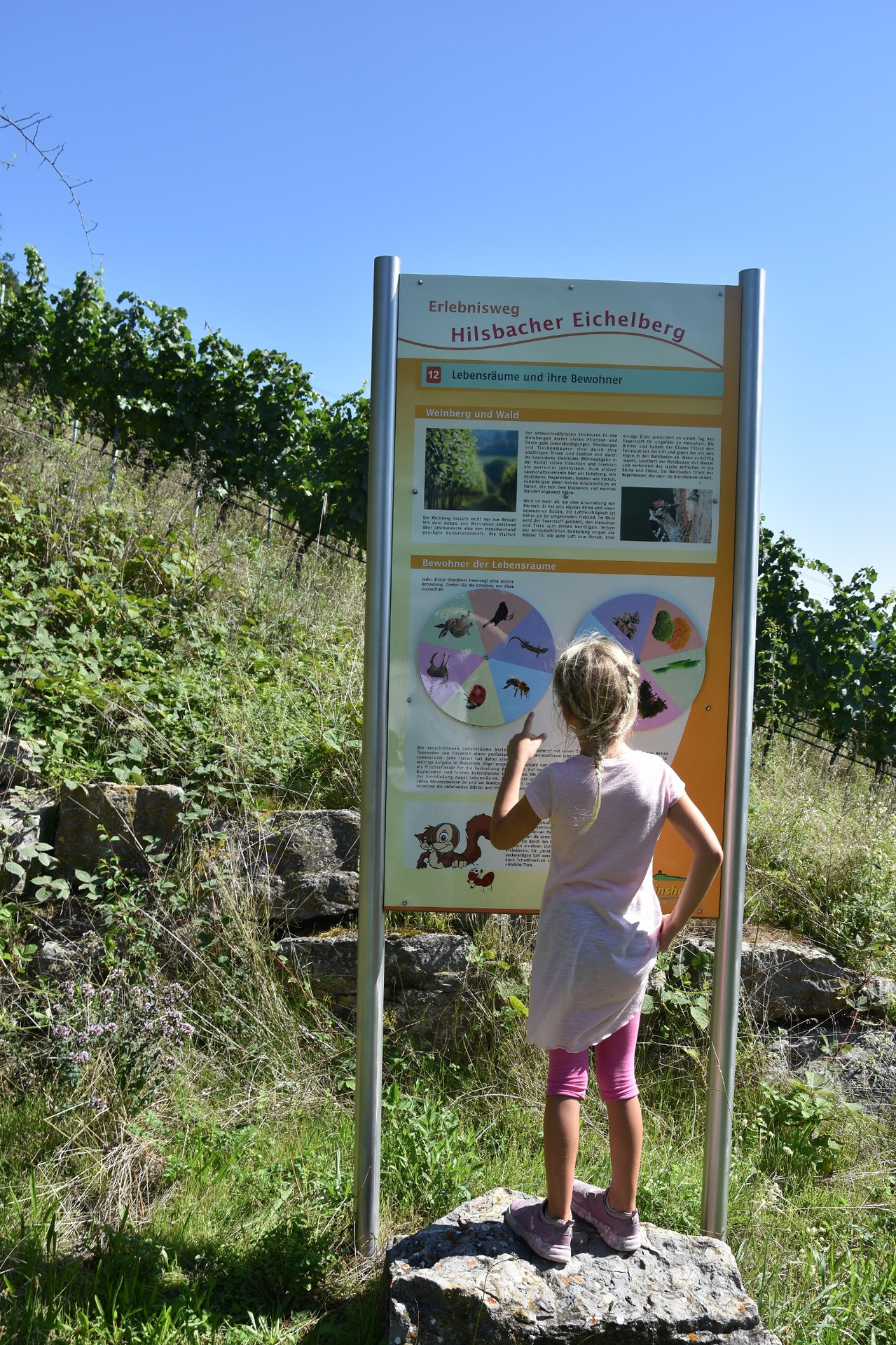 Der Erlebnisweg "Hilsbacher Eichelberg" bietet auf einer Route mit ca. fünf Kilometern Gesamtlänge 20 Stationen mit viel Wissenswertem zum Eichelberg und seiner Umgebung. Entdecken Sie die Natur und ihre Nutzung in den Bereichen Forst und Weinbau. Ob zum Spazierengehen, als Kombinationsroute zu den angrenzenden Wanderwegen oder als Ausflugsziel mit Familie und Freunden - hier wird der Eichelberg mit seiner Geschichte und seiner heutigen Nutzung auf anschauliche Weise präsentiert.