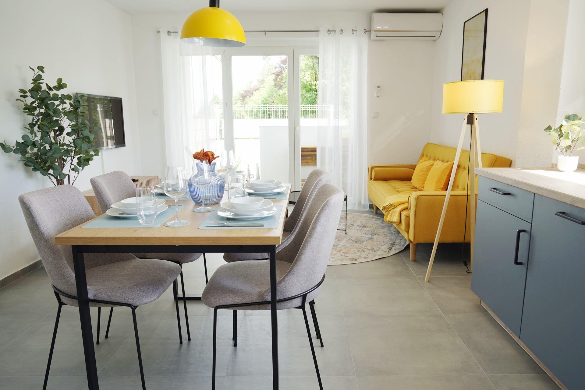 1 Schlafzimmer + Schlafcouch, 2-3 Schlafplätze, WC, Dusche, Küche Terrasse, Klima, TV, Sofa, Essbereich, ab 90 Euro pro Nacht (variiert je nach Saison)