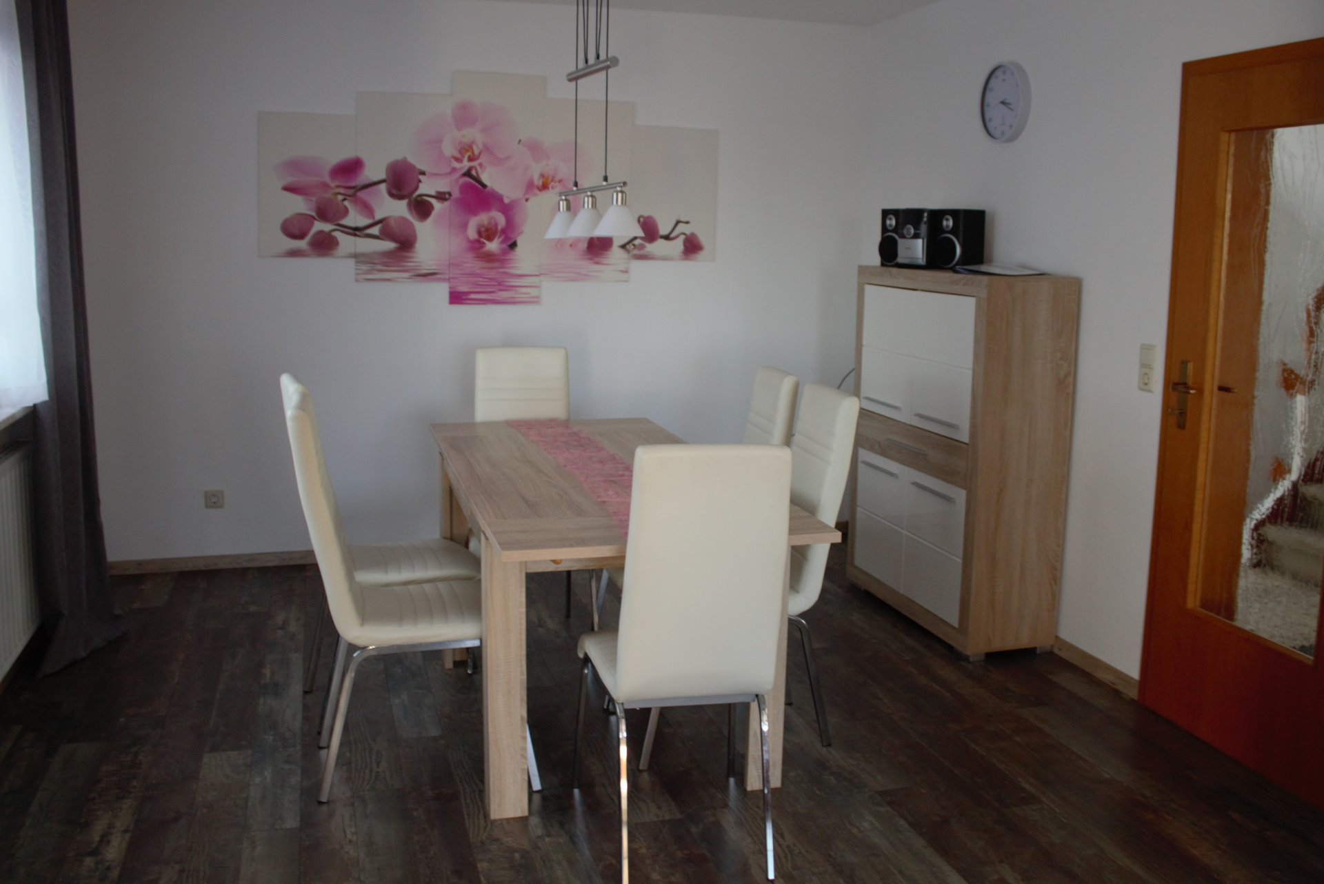 Das Ferienhaus hat 111 qm Wohnfläche und es können bis zu 6 Personen übernachten. Im 1. Stock sind Wohnzimmer, Esszimmer, Küche, Essberiech, WC/Badewanne und eine Terrasse mit Gasgrill. Im 2. Stock sind 3 Schlafzimmer, Gästezimmer und WC/Dusche. Im Keller befinden sich 2 Waschmaschinen.
