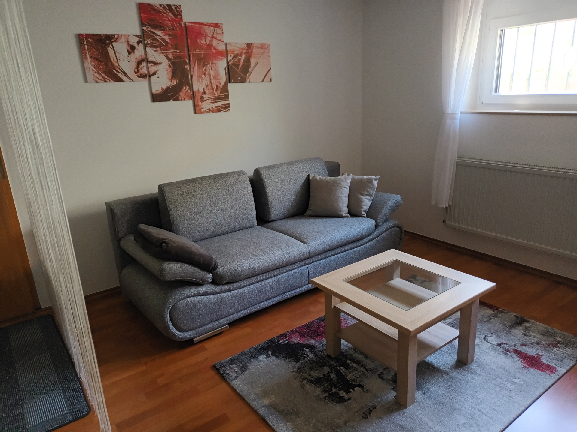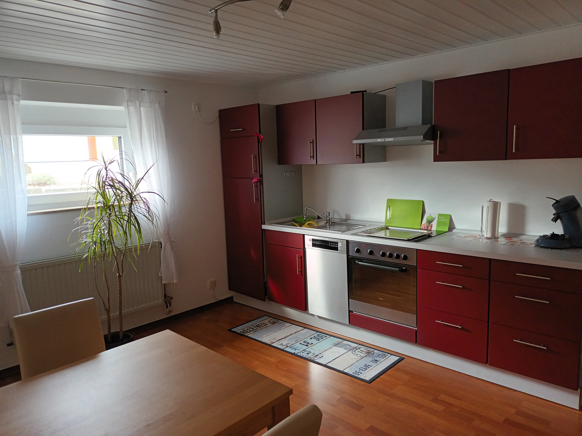 Neu renoviertes Nichtraucher-Apartment mit sep. Eingang, komb. Wohn-Schlafbereich mit franz. Bett, einem Schlafsofa, Fernseher, voll ausgestattete Küche mit Spülmaschine, Mikrowelle, Senseo Pad-Maschine. Badezimmer mit Dusche, WC, Handtuchtrockner und Föhn.