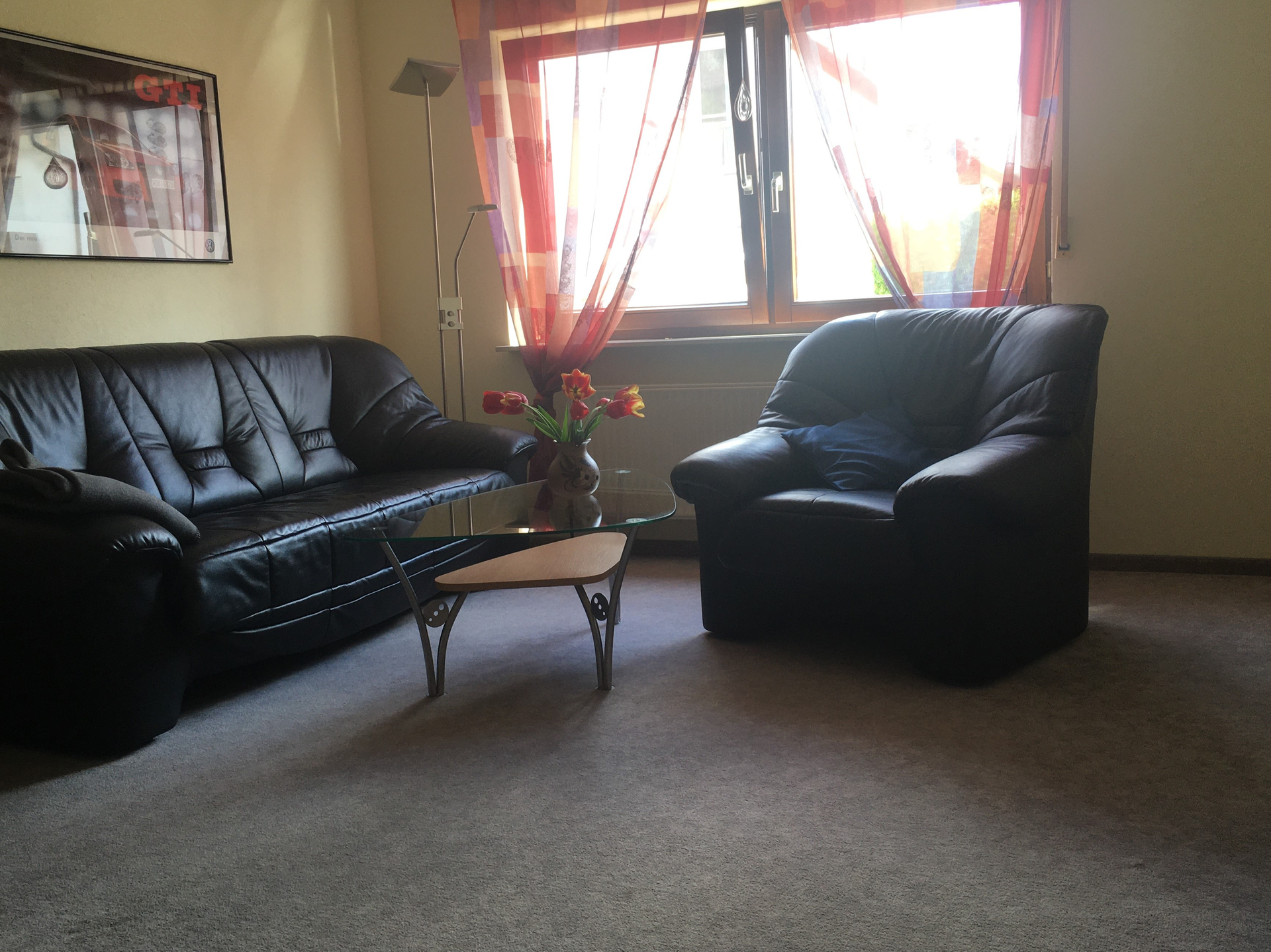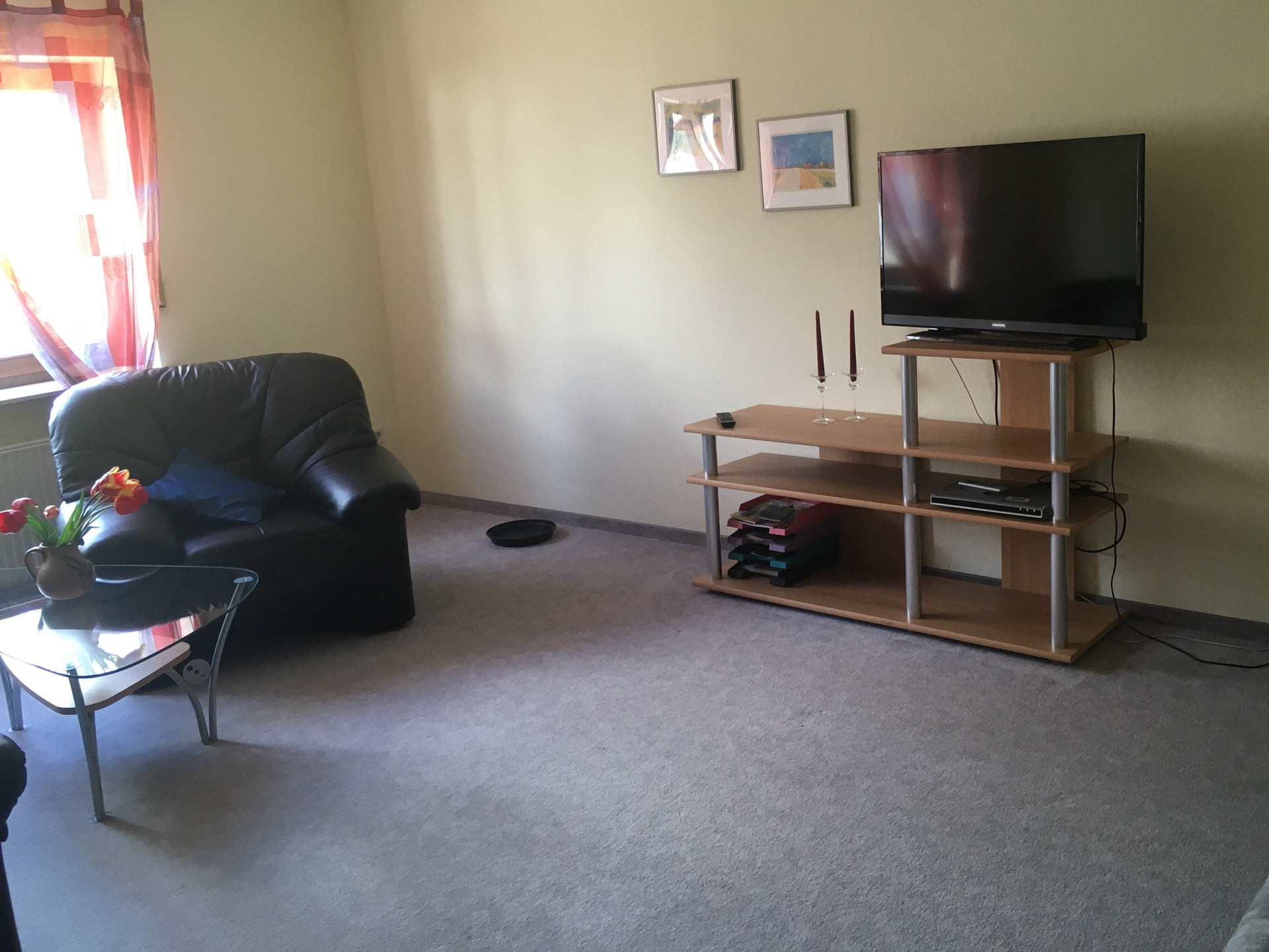 65 m² Ferienwohnung mit Wohn-/ Esszimmer, Schlafzimmer und Bad. Gut ausgestattete Küche mit Herd, Backofen, Mikrowelle, Kaffee-Espresso- Maschine, Kühlschrank und Waschmaschine.