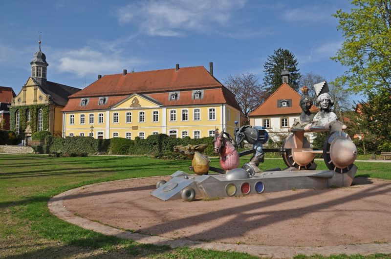Direkt am Friedrich-Hecker-Platz ist auch der Marstall zu sehen, in dem zu früheren Zeiten die Pferde des Schlossbesitzers untergebracht waren. Nach grundlegender Renovierung wird das historische Gebäude seit einigen Jahren als Ausstellungsgalerie des Künstlerehepaares Görtz genutzt