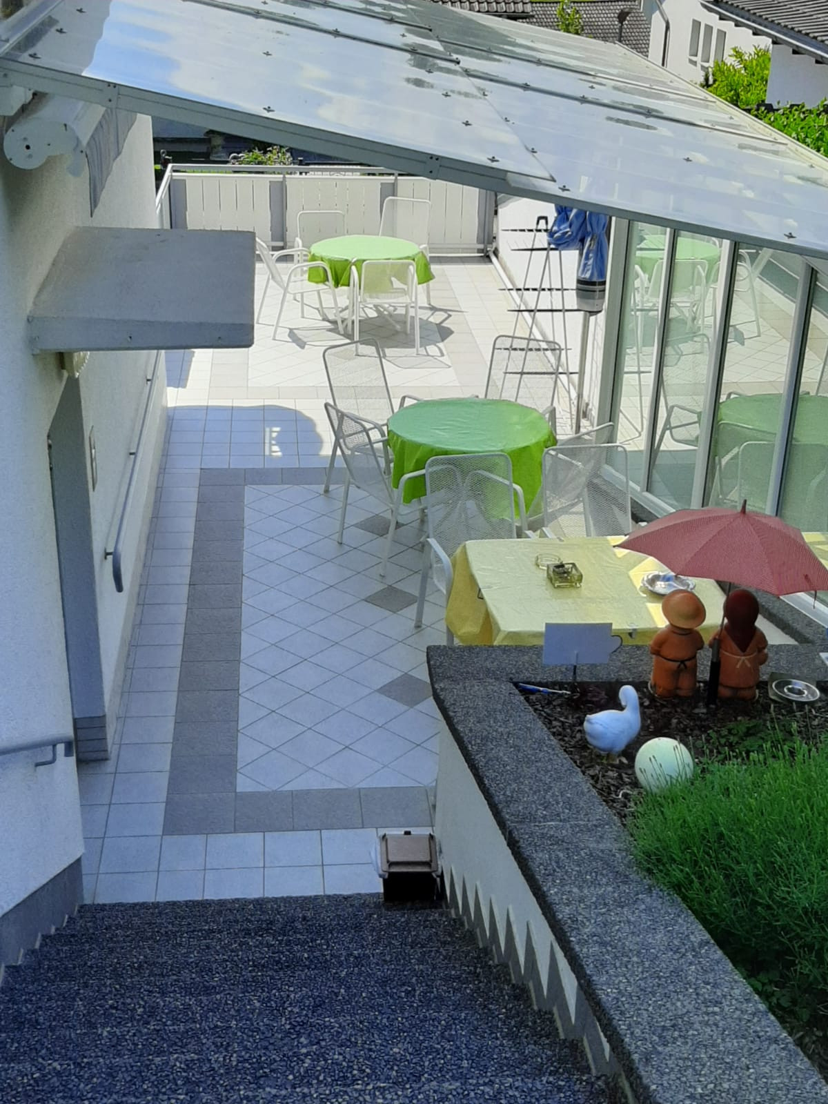 Genießen Sie die Sonne auf unserer großen, teilweise überdachten Terrasse.
