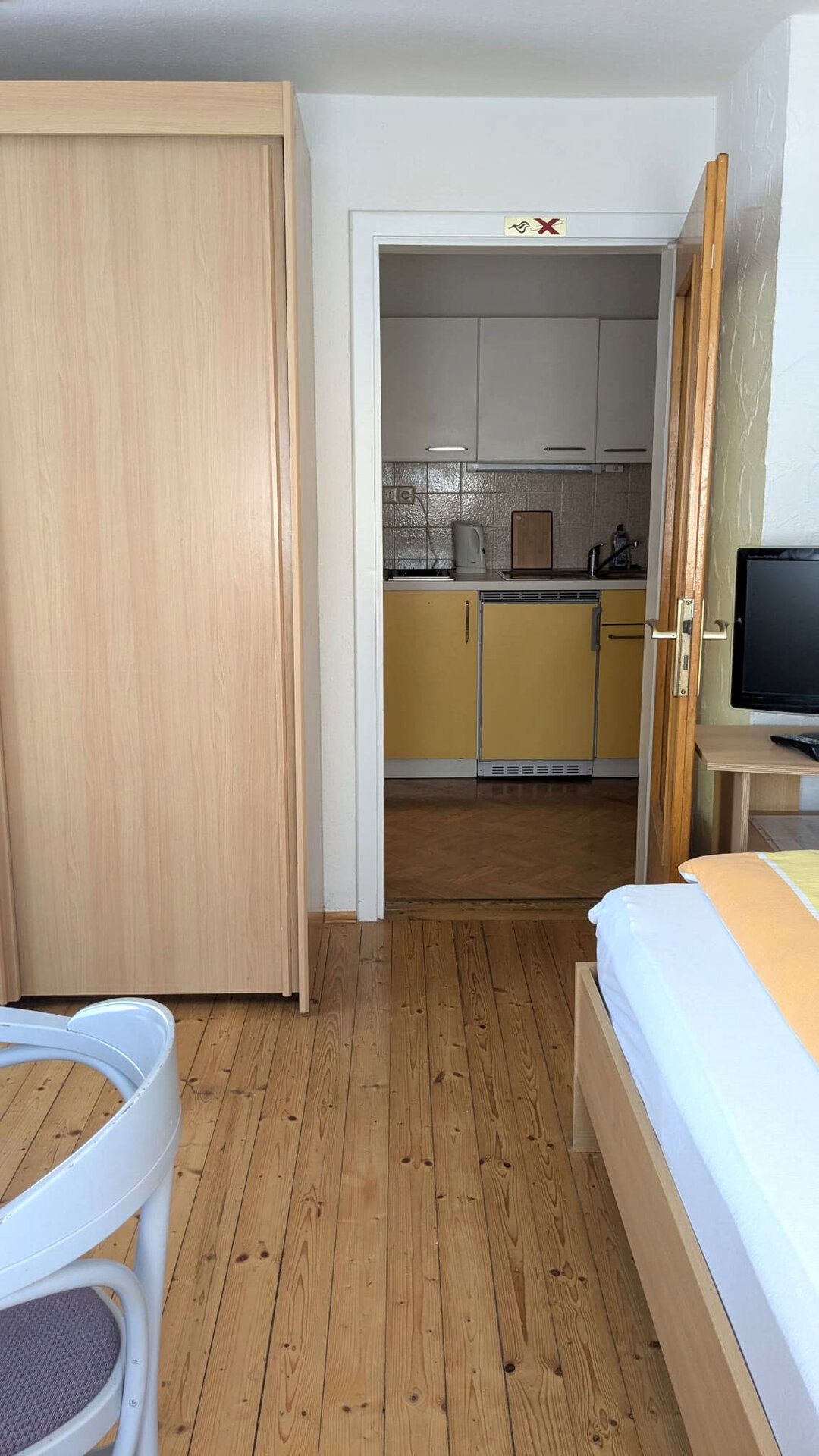 Ferienhaus in ruhiger Lage mit 2 mal 1 Zimmerapartment, oder 2 mal 2 Zimmer Apartment mit bis zu 3 Betten, eine gut ausgestattete Küchenzeile mit 2 Herdplatten, Kühlschrank, Kaffeemaschine und Mikrowelle, Bettwäsche und Handtücher werden bereitgestellt. Es ist ein Waschraum mit Waschmaschine und Trockner ist vorhanden.