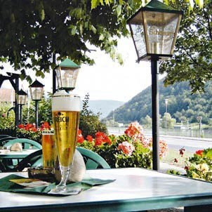 Unser Haus verfügt über eine großzügig angelegte Terrasse mit Biergarten und herrlichen Blick zum Neckar insgesamt für 150 Personen, Kinderspielplatz, eine überdachte Fahrradunterstellmöglichkeit und großer Parkplatz.