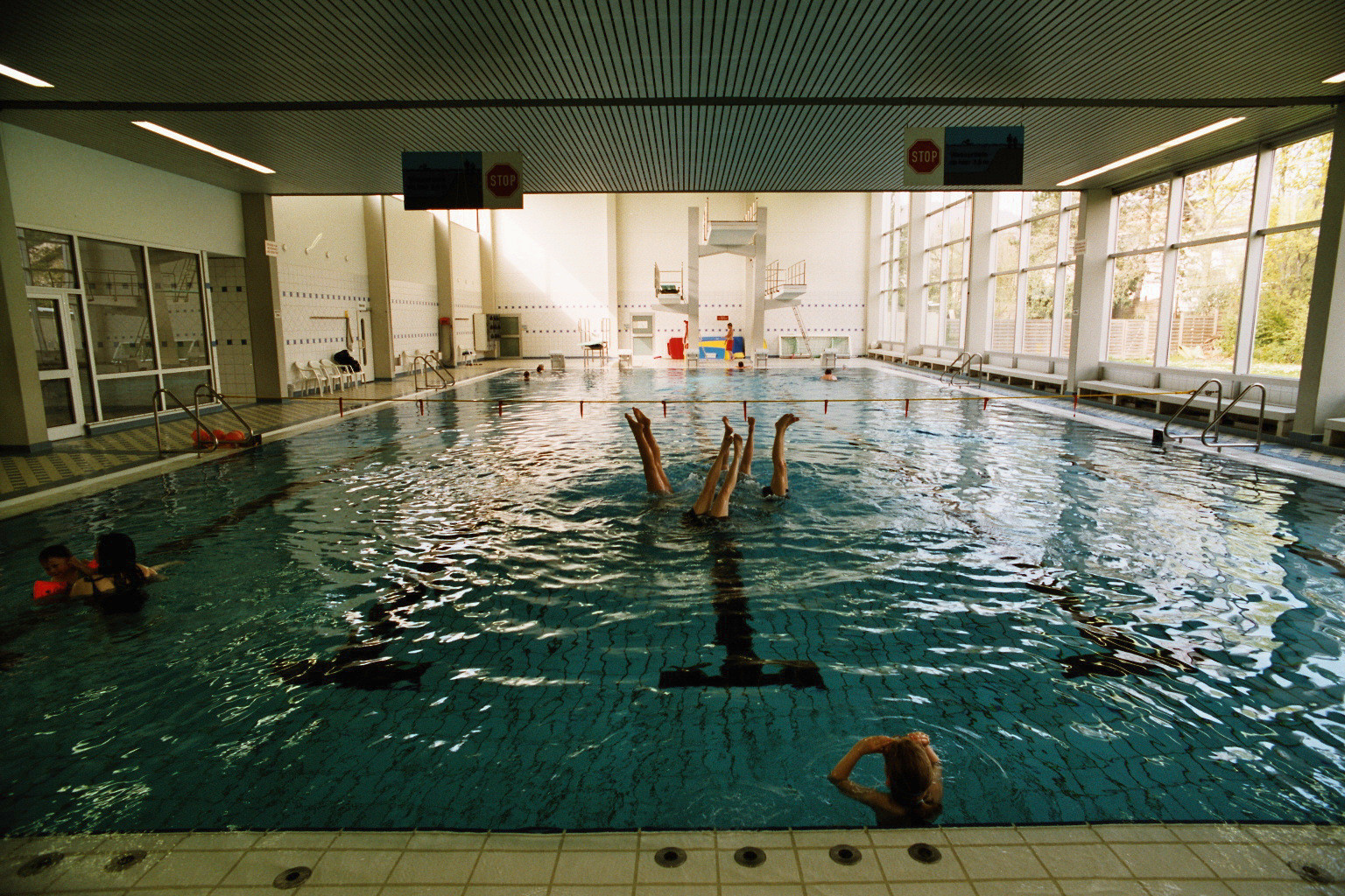 Das Hallenbad in Dossenheim bietet ein 12,50 x 25,00 m Variobecken mit 29°C Wassertemperatur, ein Kinderbecken mit 32°C Wassertemperatur, eine Sprunganlage mit 1 - 5 m Türmen und einen Eltern-Kinder-Bereich.