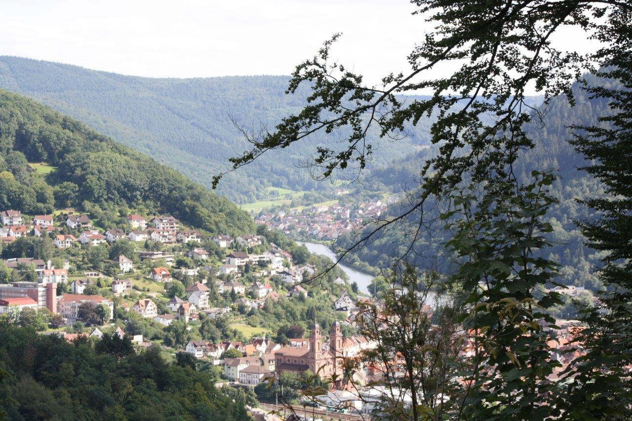 Der Ausblick vom Itterberg bietet vielfältige Ausblicke auf die Innenstadt von Eberbach, den Ohrsberg, die Steige, die Burghälde, das Ittertal, Neckarwimmersbach und Rockenau. Quelle: Broschüre "Schöne Aussichten Eberbach am Neckar".