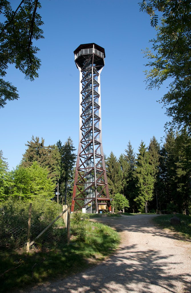 Vom Wanderparkplatz aus begeben wir uns zum Teltschikturm, einem Aussichtsturm, der auf einer Höhe von 530 m ü. NHN mit seiner Aussichtsplattform in 36 m Höhe eine beeindruckende Aussicht bietet. Zuvor gilt es jedoch die 192 Stufen in schwindelerregende Höhe zu erklimmen (Der Rekord hierfür liegt bei 32 Sekunden!).