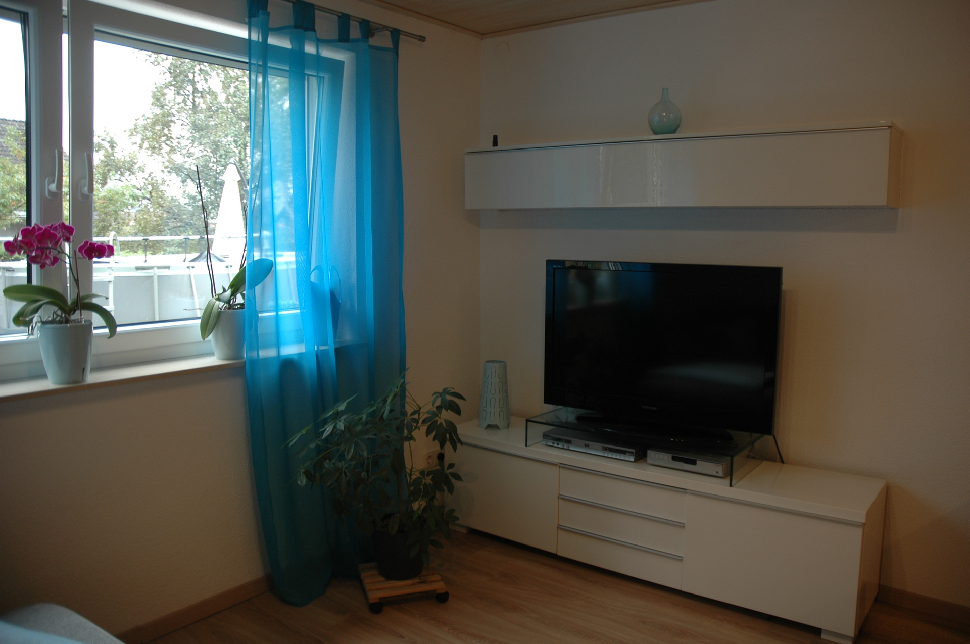 Die 55 qm große, ruhig gelegene Wohnung ist voll ausgestattet mit Schlafzimmer, Bad mit ebenerdiger Dusche und Waschmaschine, großzügige Wohn-Ess- Küche. Terrasse inkl. Kletterturm, Pool und Grill