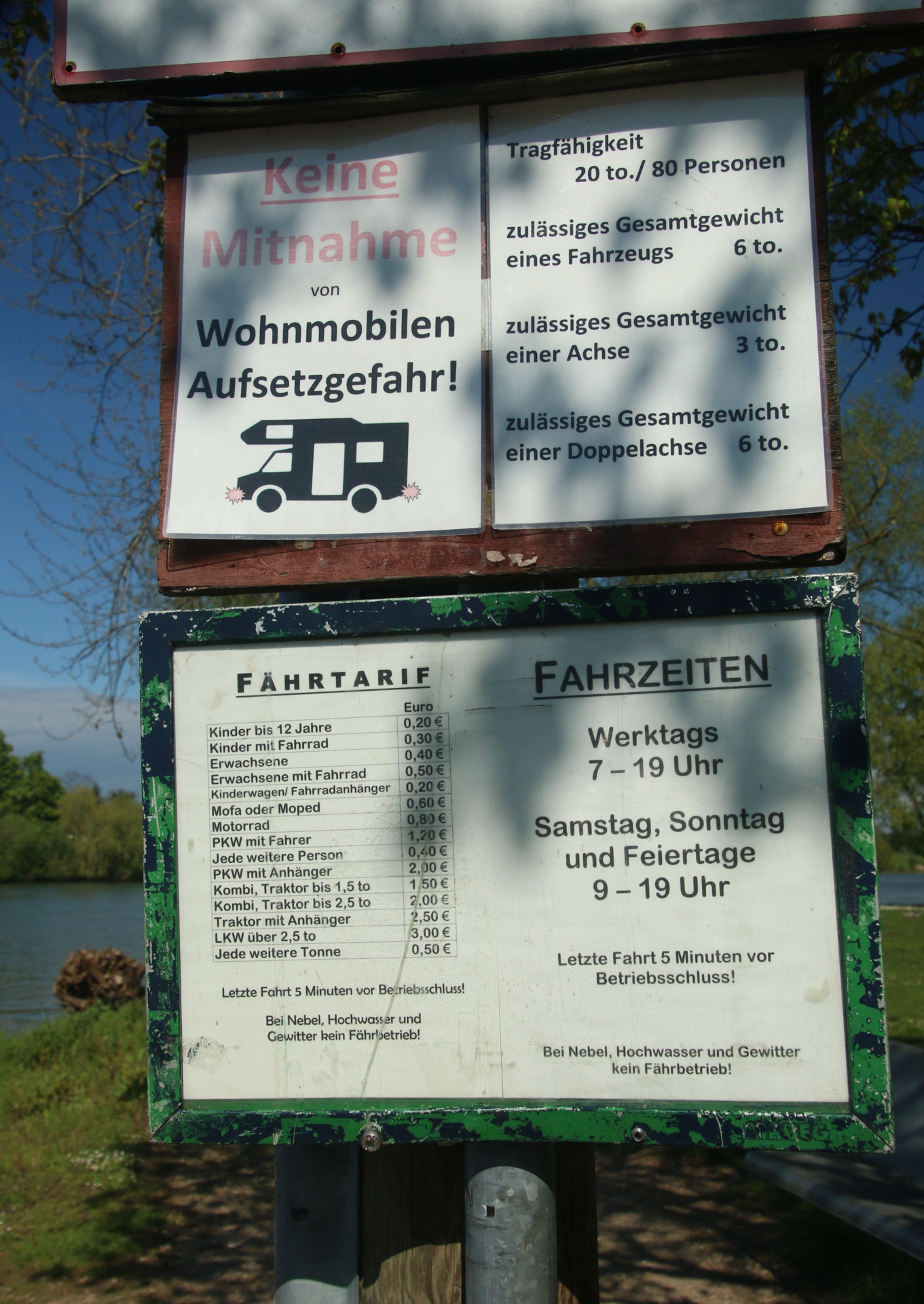 Bei Nebel, Hochwasser und Gewitter fährt die Fähre nicht. Wohnmobile können leider nicht mitgenommen werden.