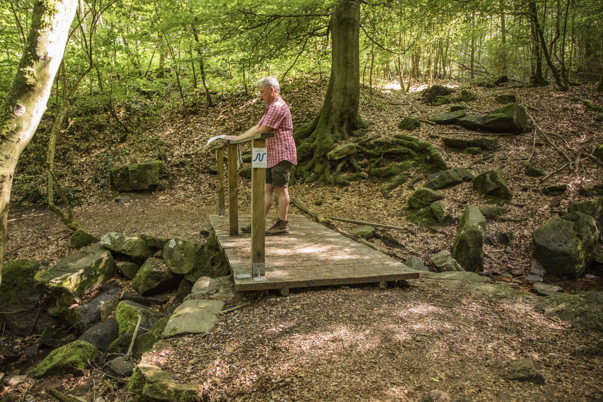 Der Steig führt zwar um die Burgfeste Dilsberg