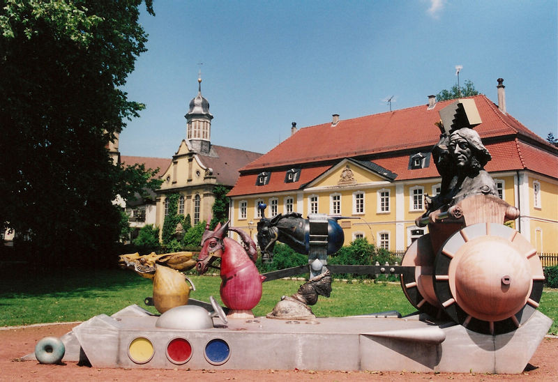 Der Schlosspark wurde in den letzten Jahren durch Kunstwerke des hier lebenden Künstlers Prof. Jürgen Goertz bereichert. Prof. Goertz, der sich in Fachkreisen bereits einen bedeutenden Namen gemacht hat, hat die Skulpturen zur Aufstellung im Schlosspark zur Verfügung gestellt. Wenngleich ab und zu kritische Stimmen zu hören sind, so werden doch die Kunstwerke von der überwiegenden Zahl der Besucher mit Interesse und Zustimmung betrachtet. Auch auf dem neugestalteten Friedrich-Hecker-Platz sind Goertz-Kunstwerke zu sehen. Besonderen Bezug zur Örtlichkeit hat die Skulptur „Heckers Traum“, die direkt vor dem Heckerhaus aufgestellt ist.