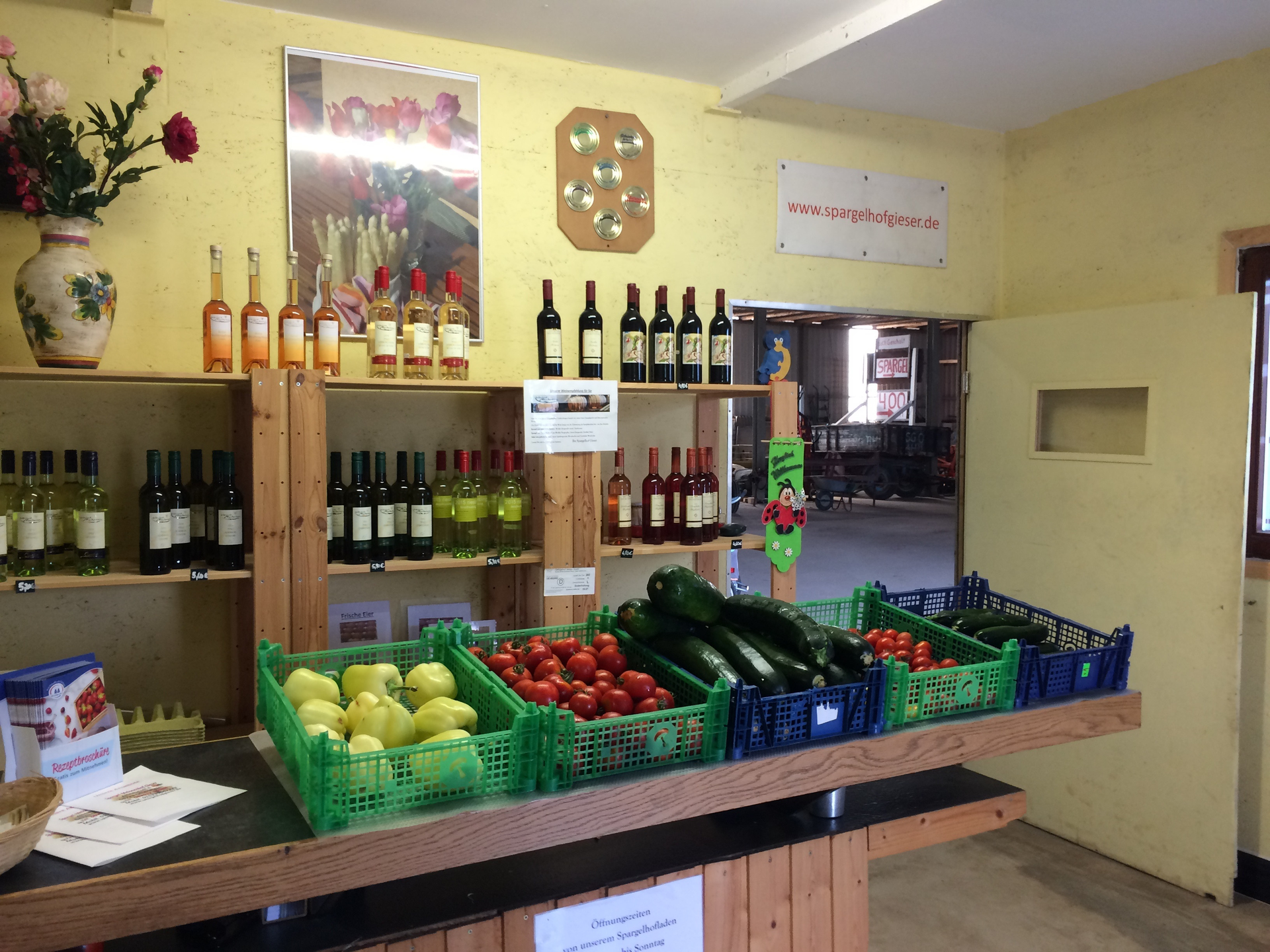 Einkaufen direkt beim Bauern im Hofladen ist ein Muss. Der Duft von frischem, knackigem Gemüse der Saison macht den Einkauf zu einem Erlebnis für die Sinne. Als Besonderheit sind neben Bleich– und Grünspargel im weiteren Jahresverlauf auch Melonen und Artischocken im Angebot. Von Kartoffeln und Karotten bis hin zu hausgemachten Konfitüren und Likören, alles ist gesund und schmeckt. Auf Wunsch können auch individuelle Geschenke zusammengestellt werden.