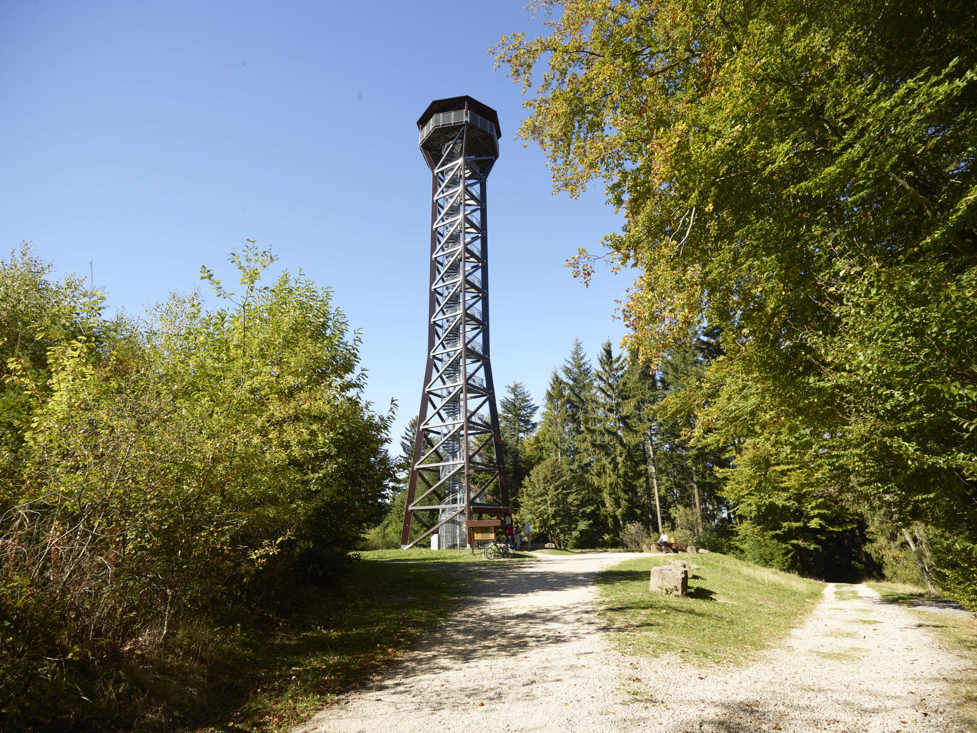 Danach rollst du weiter über Münchel, Sitzbuche und Geigersheide – und dann steht auch schon das Finale an: Der Weg führt dich über den Schriesheimer Kopf direkt zum Teltschikturm, wo dich ein atemberaubender Rundblick über den Odenwald erwartet.