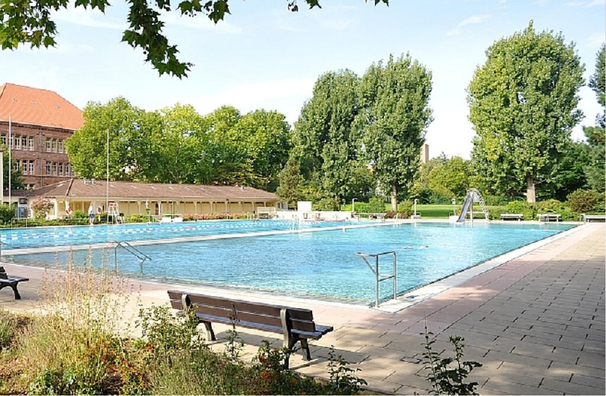 Das übersichtliche Freibad bietet eine herrliche Aussicht und schöne Lage unter großen alten Bäumen.