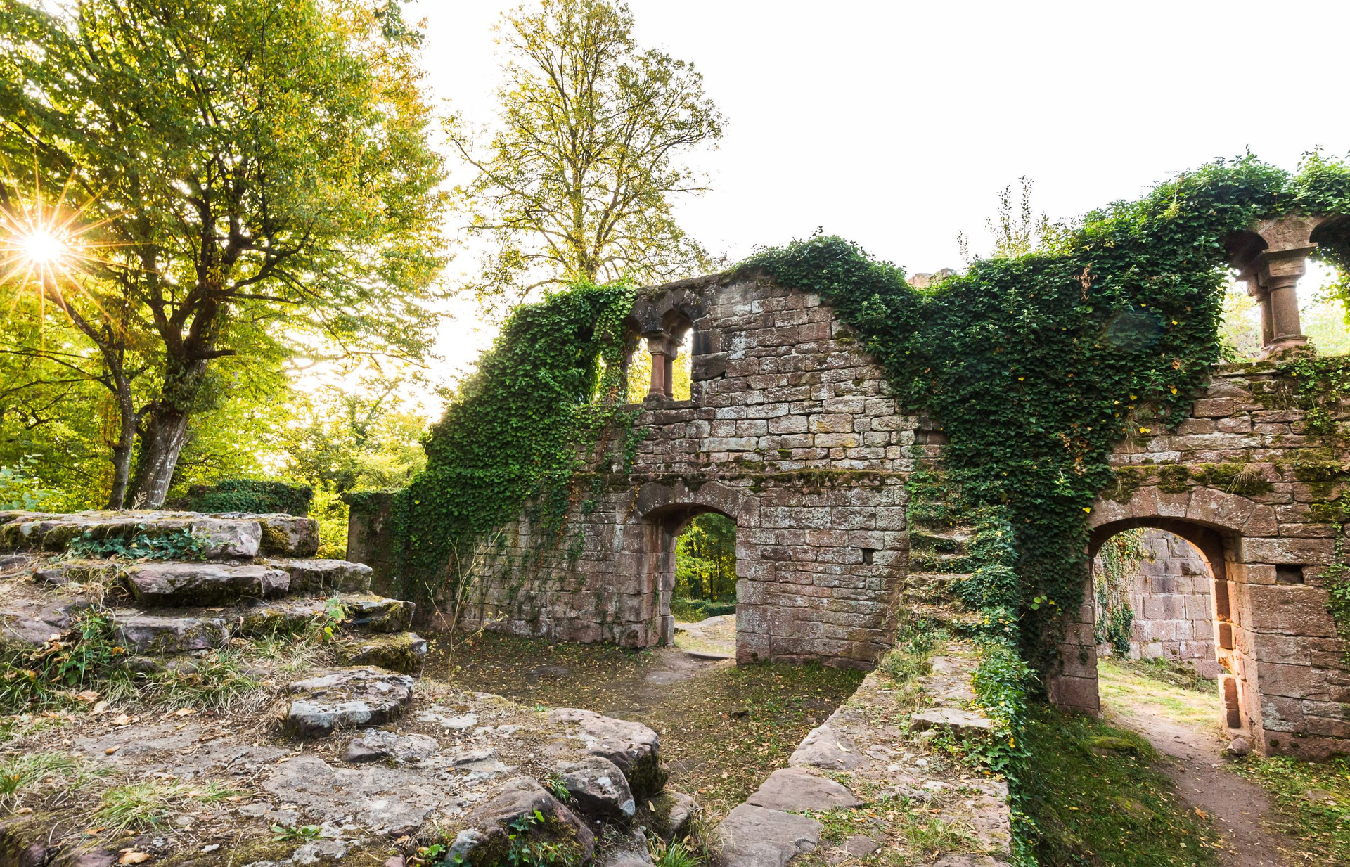 Vom Eberbacher Bahnhof aus führt der Weg zunächst über den Steg in den Schafwiesenweg, weiter durch die Hohenstaufenstraße zum Burgweg (Schild „zur Burg Eberbach“) und nach Querung der L524 in Serpentinen hinauf zur Burgruine Eberbach. Nach einer Rast und dem herrlichen Blick