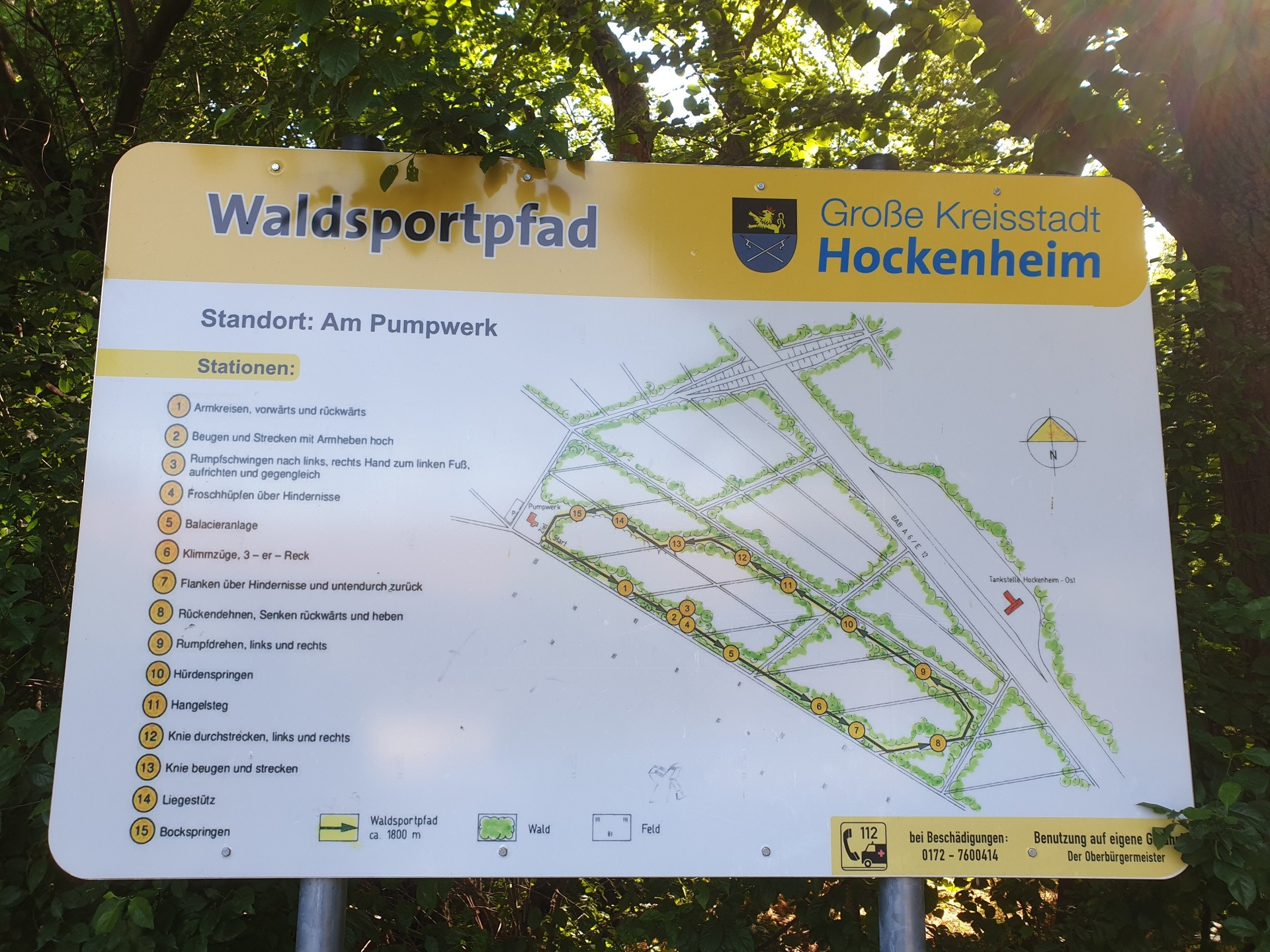 Die Übungsstationen sind jeweils auf einem Schild beschrieben. Sie bieten Sport und Spaß für jedes Alter. Die Stadt Hockenheim möchte mit diesem Angebot die Gesundheit und Bewegung fördern.