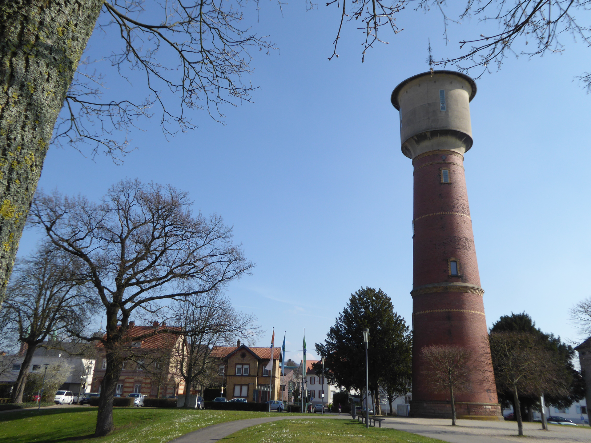 Im Jahre 1903 errichtete die Süddeutsche Baugesellschaft für Feuerungsanlagen und Schornsteinbau aus Mannheim den 48 m hohen Wasserturm. Der Wasservorrat von 250 cbm war aufgeteilt in einen Brandvorrat von 60 und einen für den Verbrauch von 190 cbm. Die Anlage ging 1991 außer Betrieb.