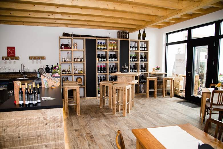 Gäste werden in der neu errichteten Vinothek, in dem Innenhof mit mediterranem Flair oder im urigen Gewölbekeller von 1877 empfangen. Neben den hauseigenen Weinen werden auch Edelbrände aus handverlesenem Obst, aus biologisch integriertem Anbau, angeboten.