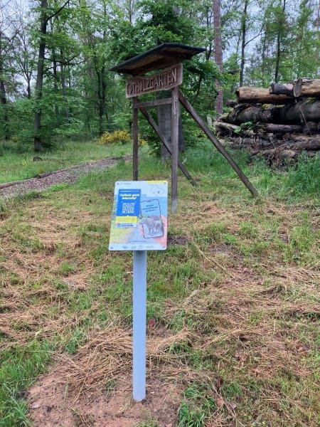 Augmented Reality Informationsstation. Mit der Weitersehen App machst du Unsichtbares wieder Sichtbar, erfährst mehr darüber, warum der Totholzgarten so wertvoll für die Artenvielfalt ist und lernst einige seiner Bewohner kennen.
