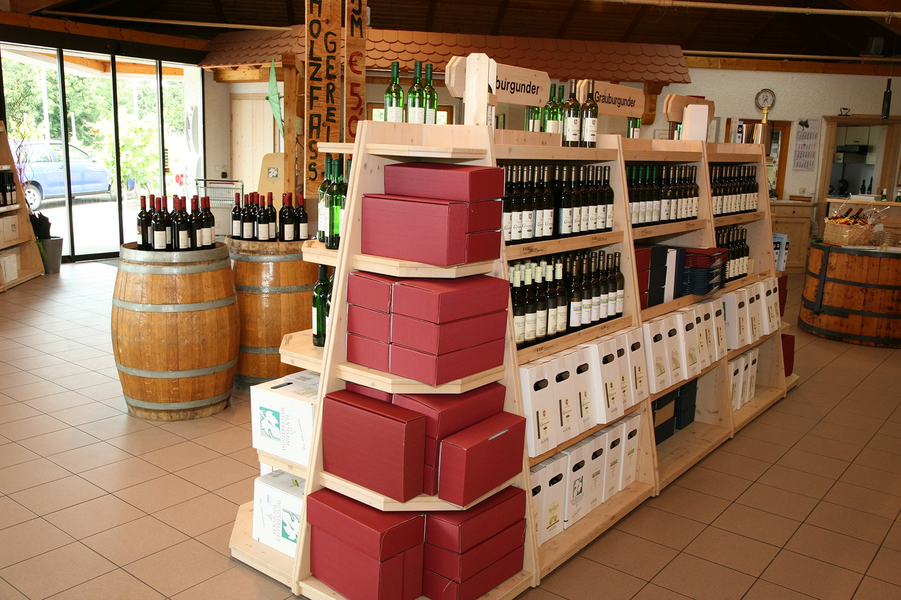 Im Weinpavillion werden rund 150 verschiedene regionale Weinspezialitäten verkauft. Fachkundiges Personal steht zur Seite und hilft bei der Auswahl der Weine, die verkostet werden können. Weinaccessoires, Weinessig, Weingelee, Destillate und hochwertige Sekte runden das Sortiment ab.