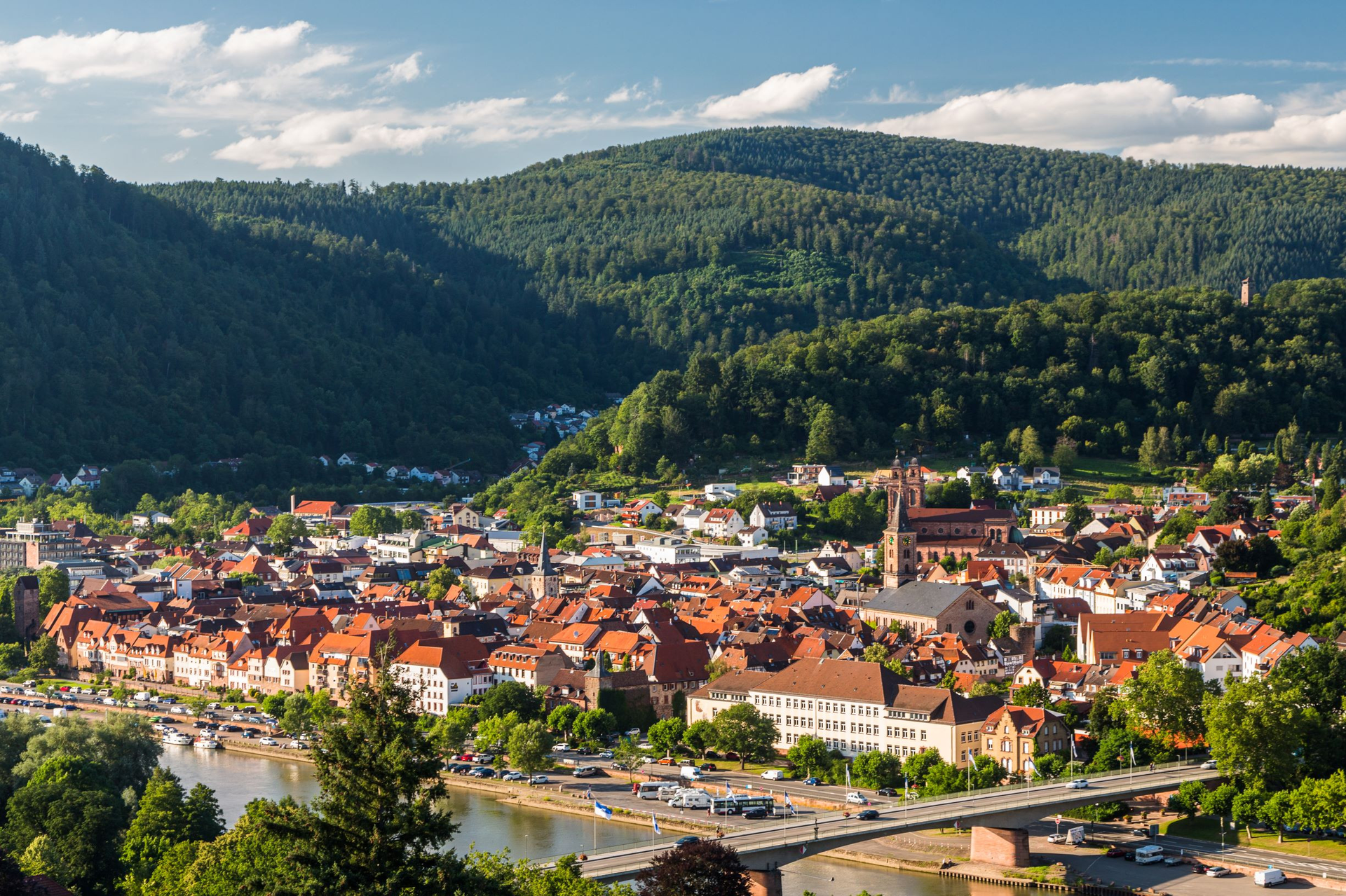 Nach einer Rast bringt der Naturparkweg Nr. 4 den Wanderer zum Steinernen Kreuz, wo die L 590 überquert werden muss. Nun ein kurzes Stück auf dem Weg mit dem „gelben V”, dann nach rechts auf Weg Nr. 2 , der etwa 1,2 km auf die Markierung „blaues Kreuz” trifft. Nach einem Rechtsschwenk gelangt man mit diesem Zeichen stets talwärts durch den „Rüdenwald” und die „Wimmersbacher Steige” hinunter über Neckarwimmersbach nach Eberbach zum Ausgangspunkt.